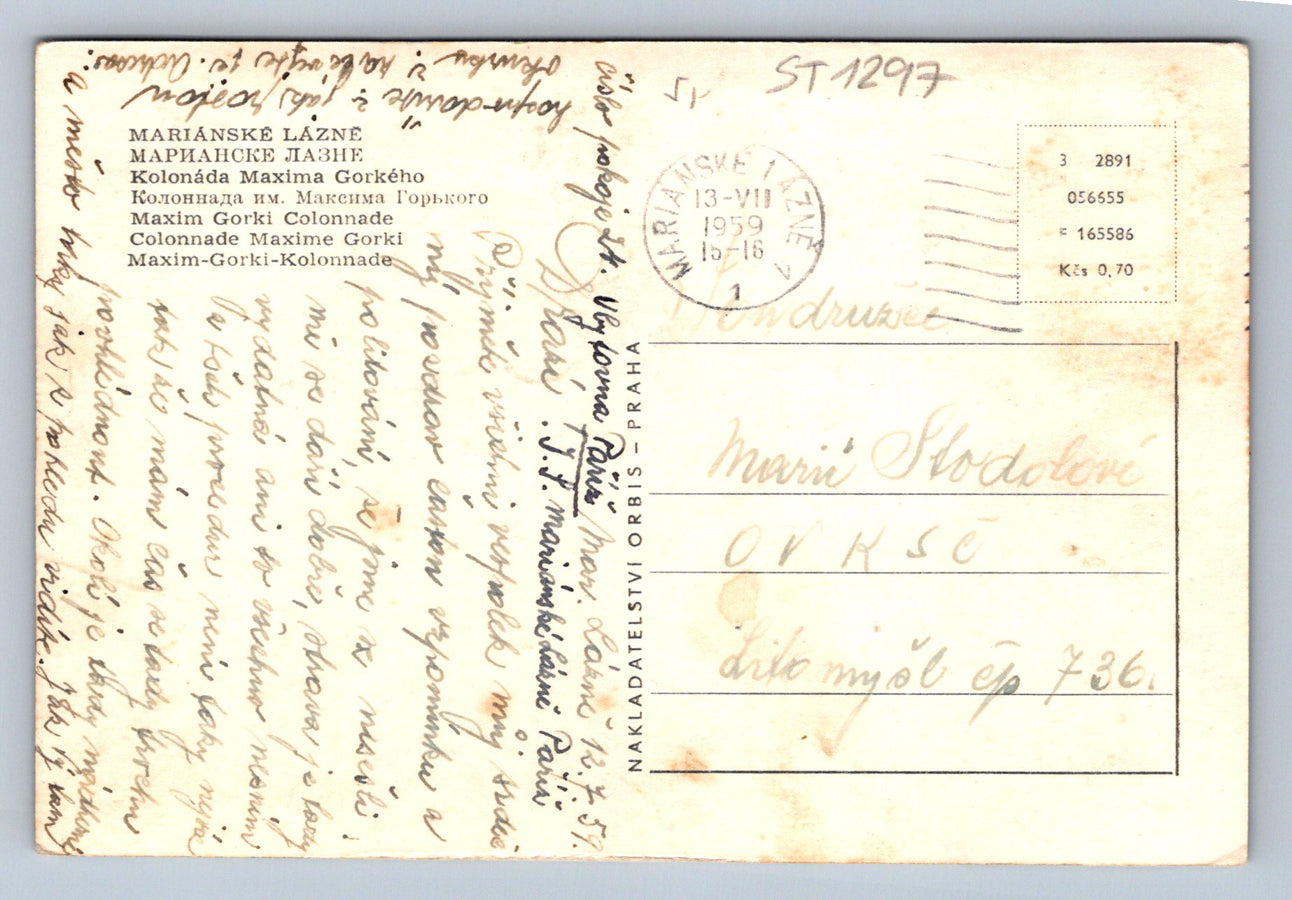 Pohlednice MARIÁNSKÉ LÁZNĚ . KOLONÁDA MAXIMA GORSKÉHO (ST1297)