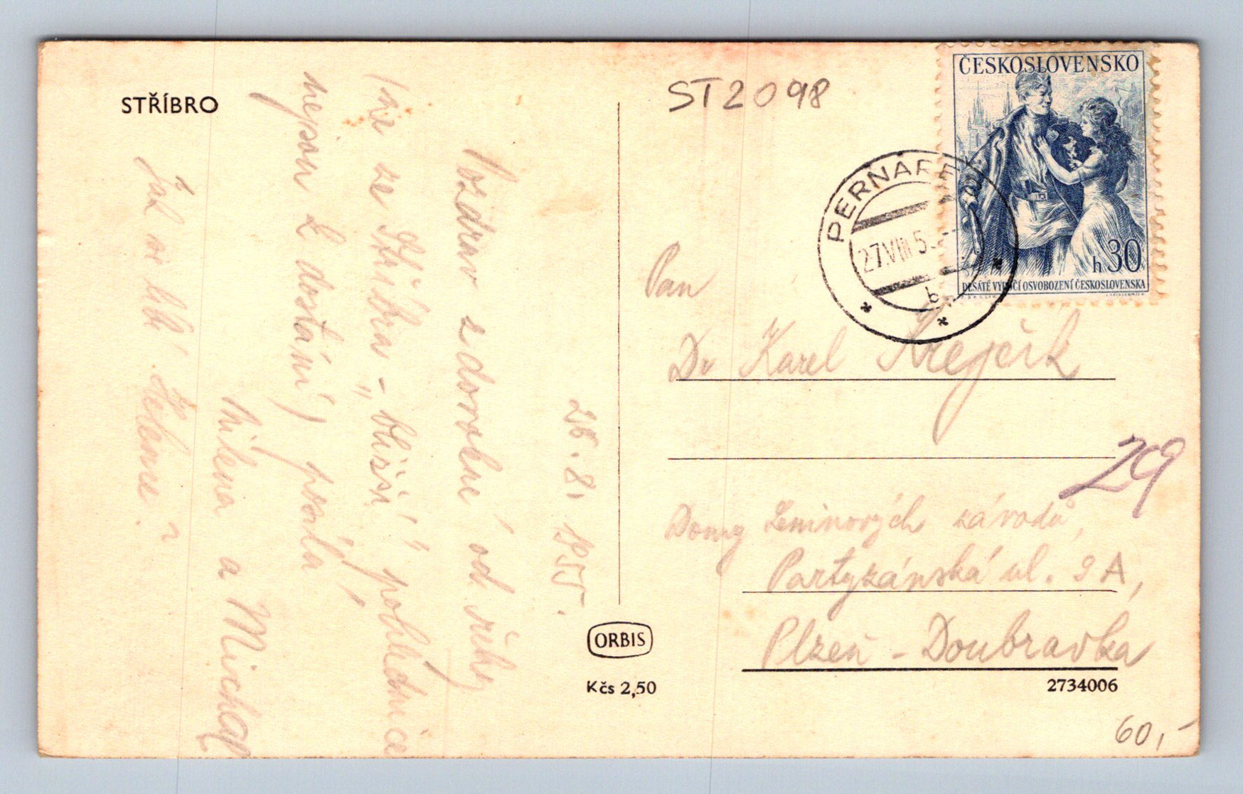Pohlednice STŘÍBRO (ST2098)