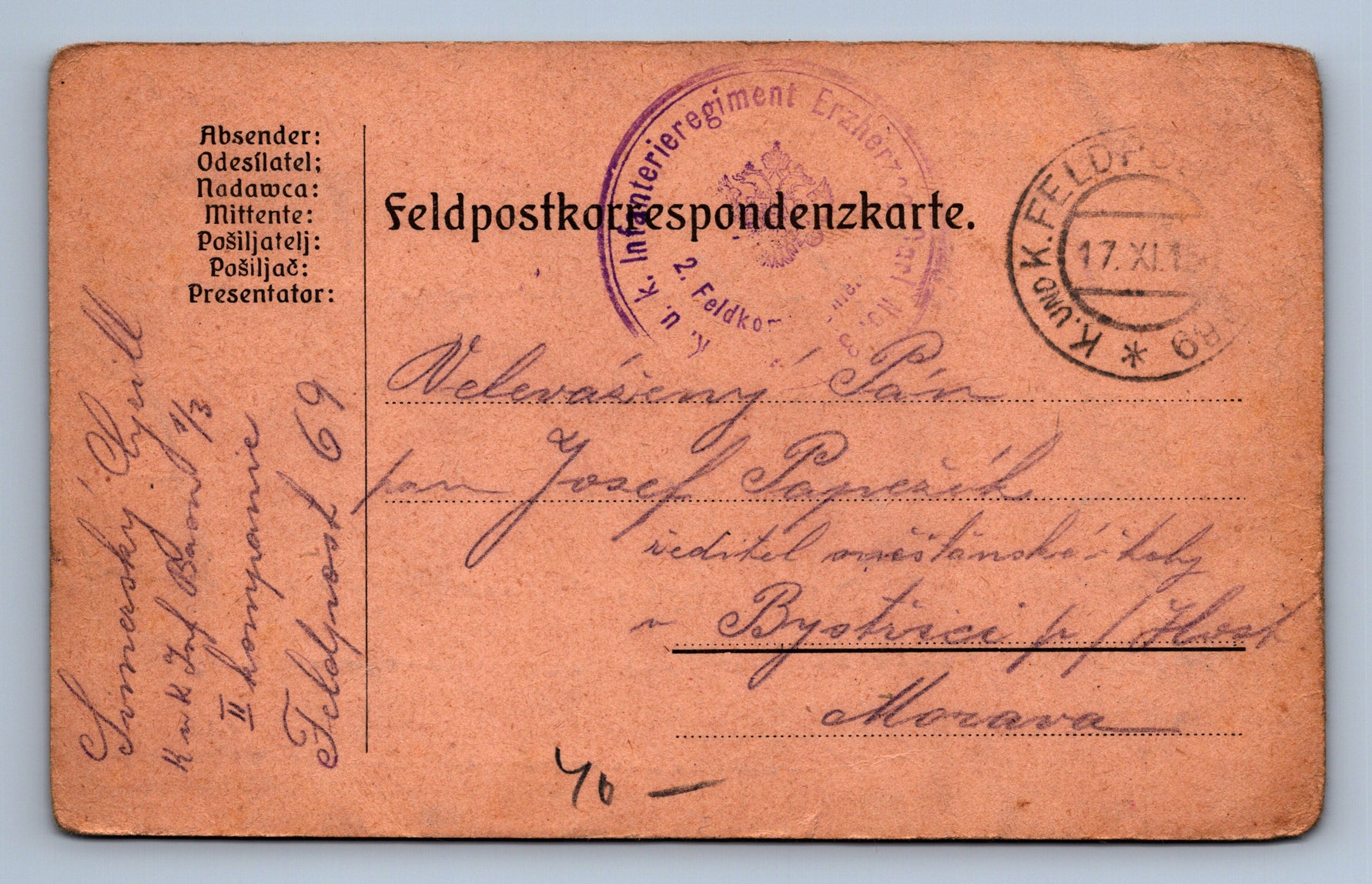 Pohlednice FELDPOSTKARTE INFANTERIE REGIMENT ERZHERZOG (ST271)