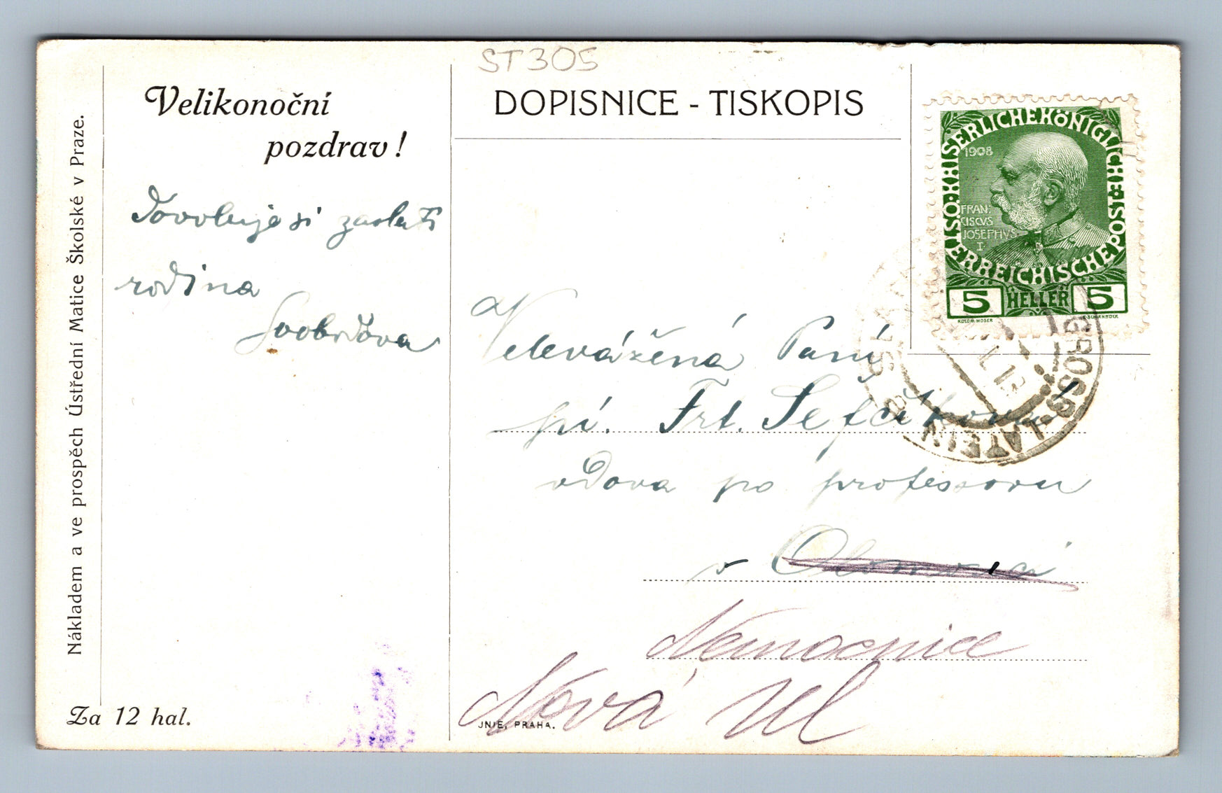 Pohlednice VELIKONOČNÍ POZDRAV (ST305)