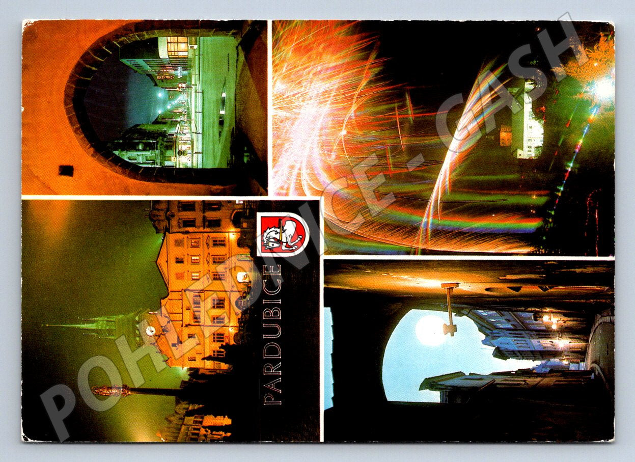 Pohlednice Pardubice noční pohled - vintage ČR velký formát od 1950
