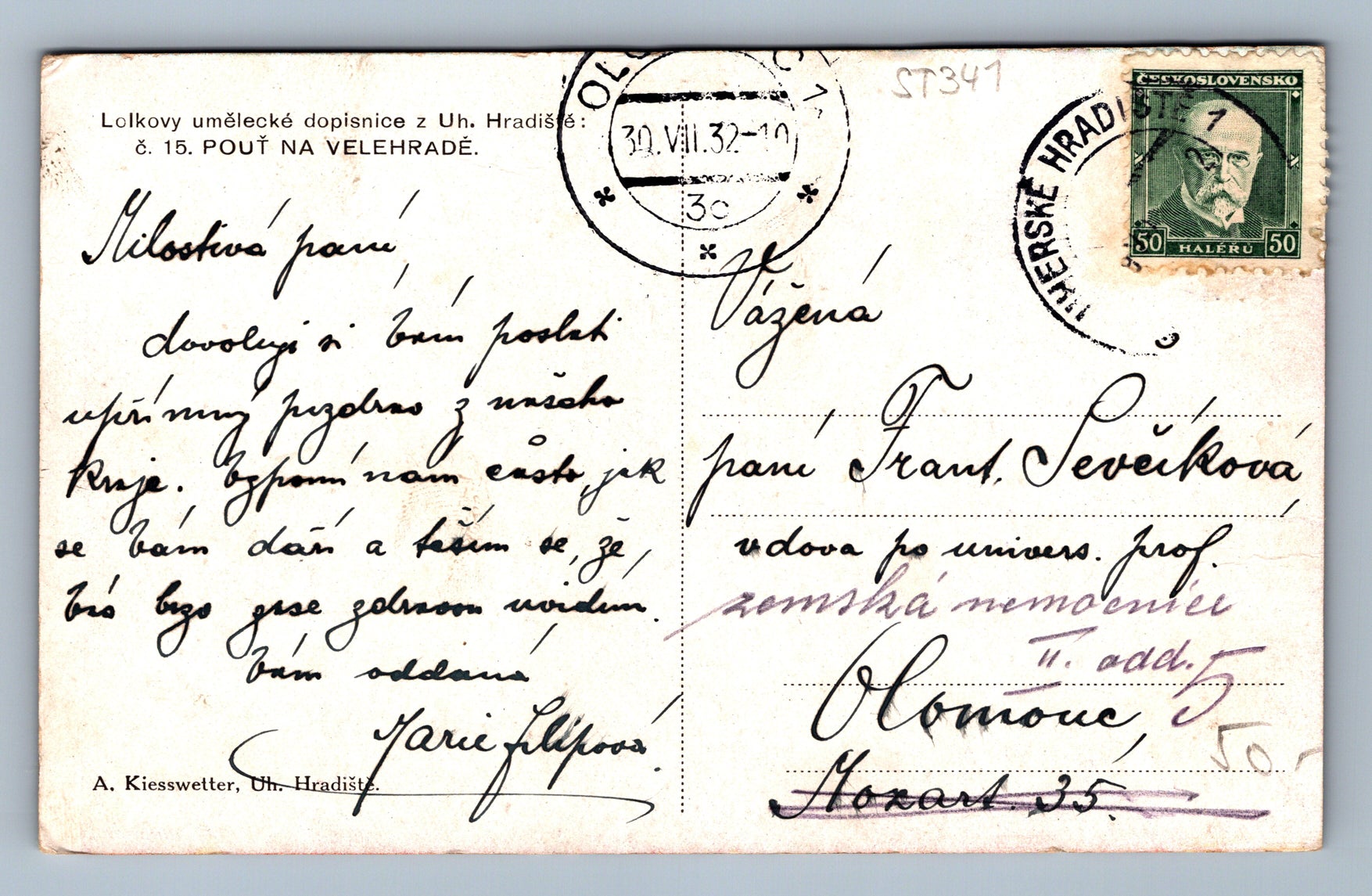 Pohlednice LOLKOVY UMĚLECKÁ DOPISNICE Z UH. HRADIŠTĚ (ST341)
