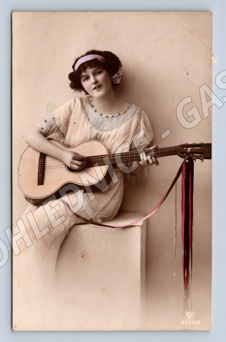 Pohlednice žena s kytarou kolorovaná rakousko uhersko (ST3487)