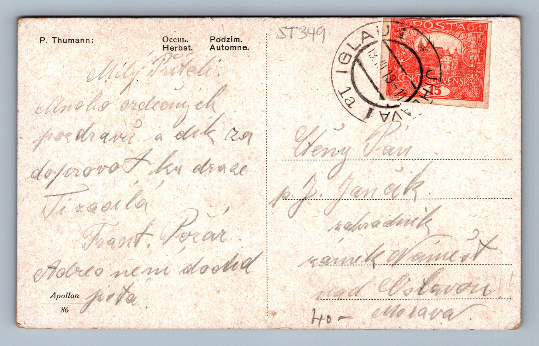 Pohlednice P THUMANN PODZIM (ST349)