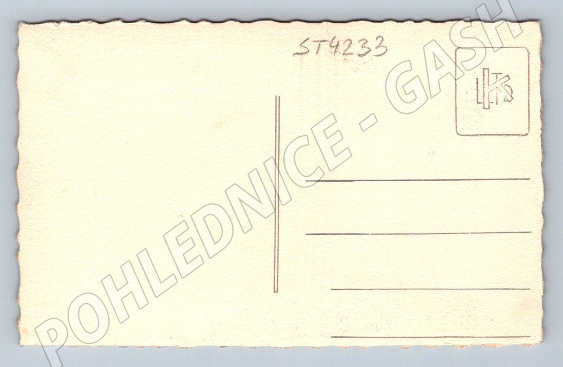 Originální stará černobílá pohlednice zobrazující automobily na silnici u lesa. Pohlednice pravděpodobně pochází z období první poloviny 20. století (mezi lety 1920–1940), což je patrné z tvaru a stylu vozidel. Na obrázku dominuje elegantní historický automobil v popředí, v pozadí je vidět několik dalších vozů. Pohlednice má klasický oddělený prostor pro adresu a text na zadní straně, nechybí ani značka vydavatele či číselné označení. Okraje pohlednice jsou zvlněné, což je typické pro dobové zpracování. Velmi pěkný sběratelský kousek pro milovníky historických automobilů a silniční dopravy.