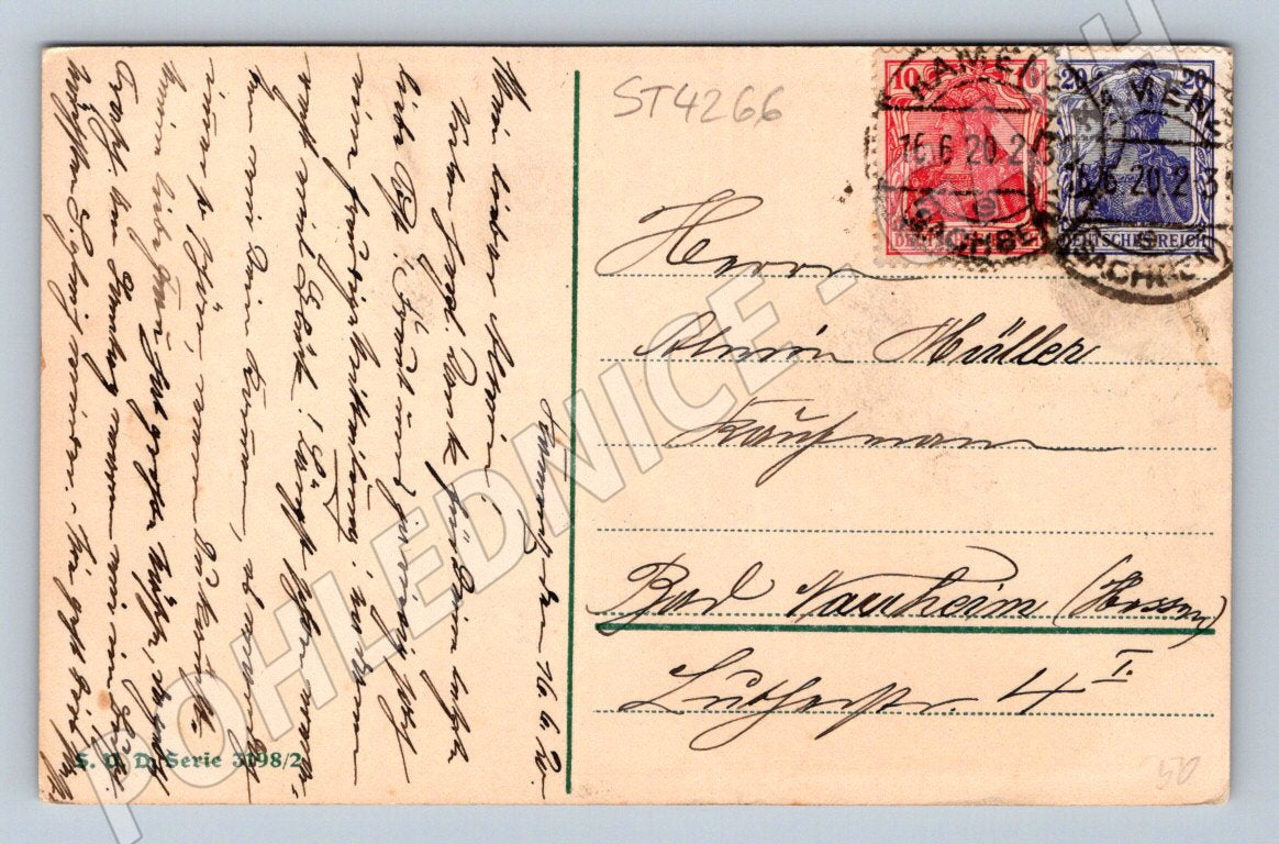 Historická pohlednice Německo 1920, malovaná krajina, poštovní známky
