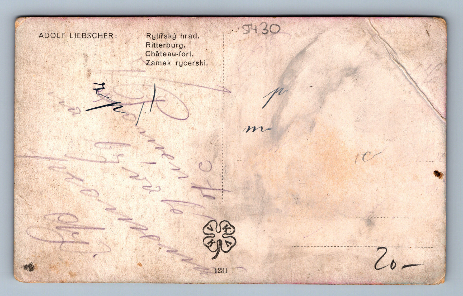 Pohlednice ADOLF LIEBSCHER RYTIŘSKÝ HRAD (ST430)