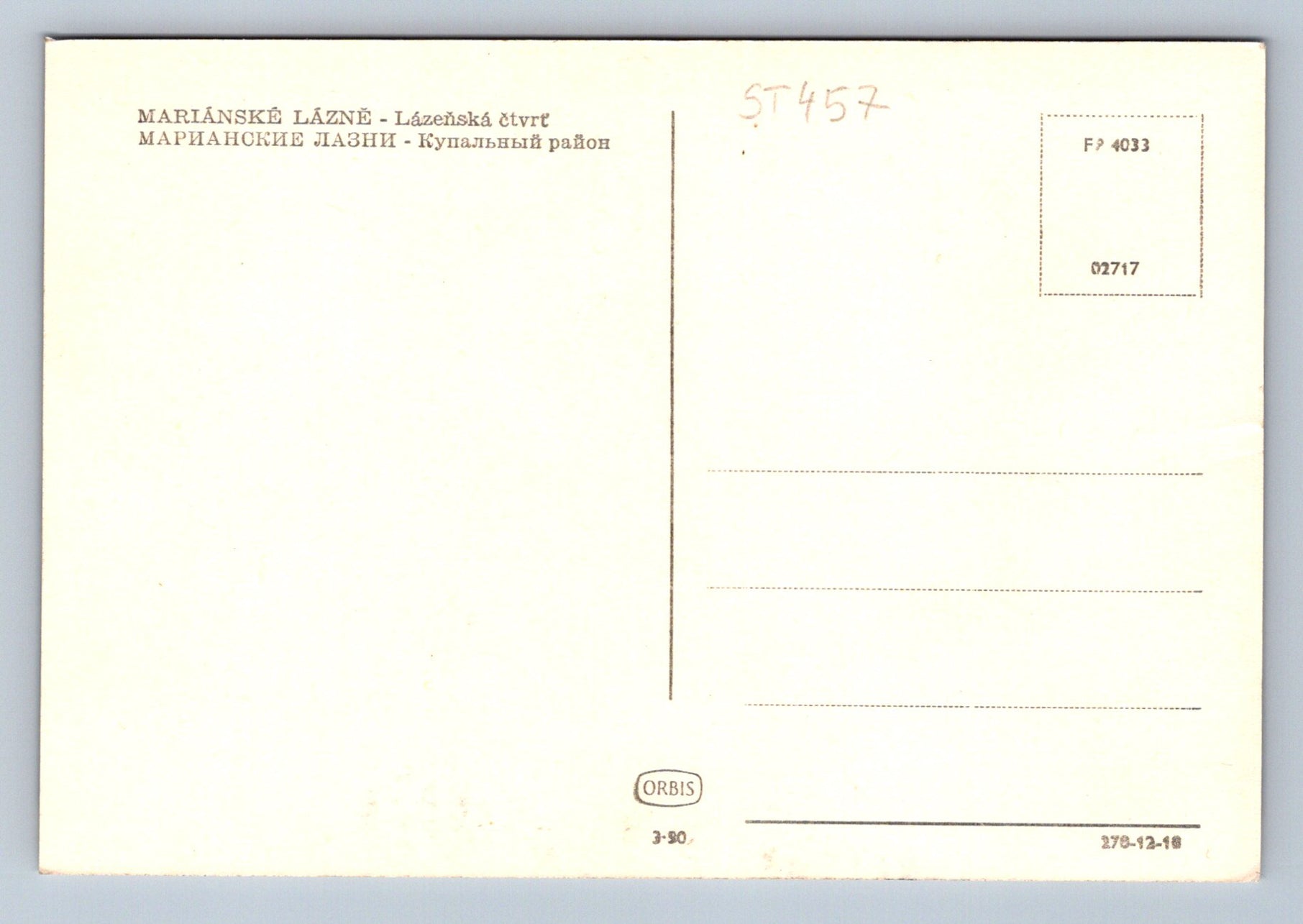 Pohlednice MARIÁNSKÉ LÁZNĚ - LÁZEŇSKÁ ČTVRŤ (ST457)