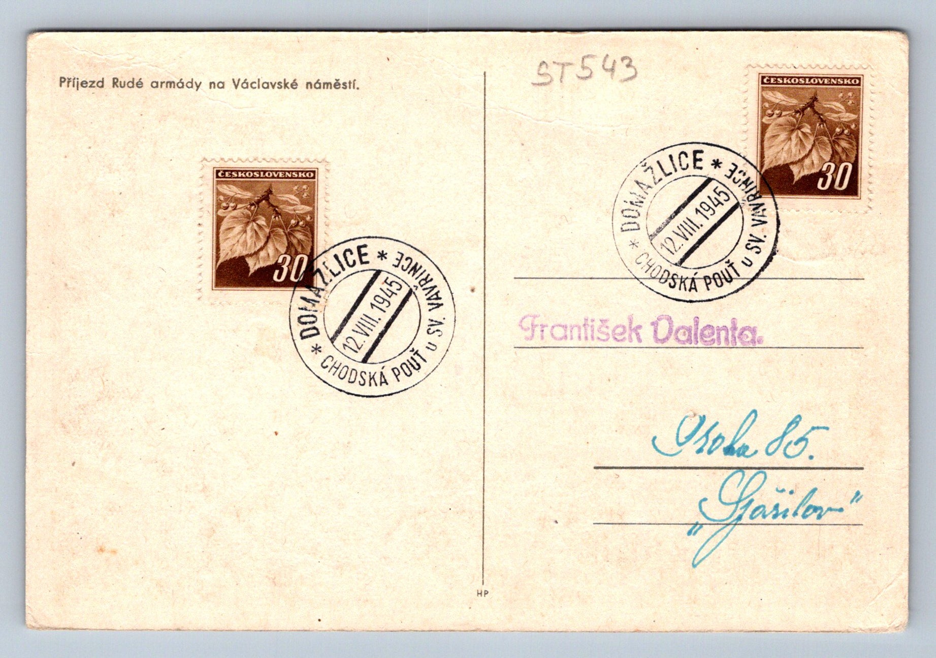 Pohlednice PŘÍJEZD RUDÉ ARMÁDY NA VÁCLAVSKÉ NÁMĚSTÍ (ST543)