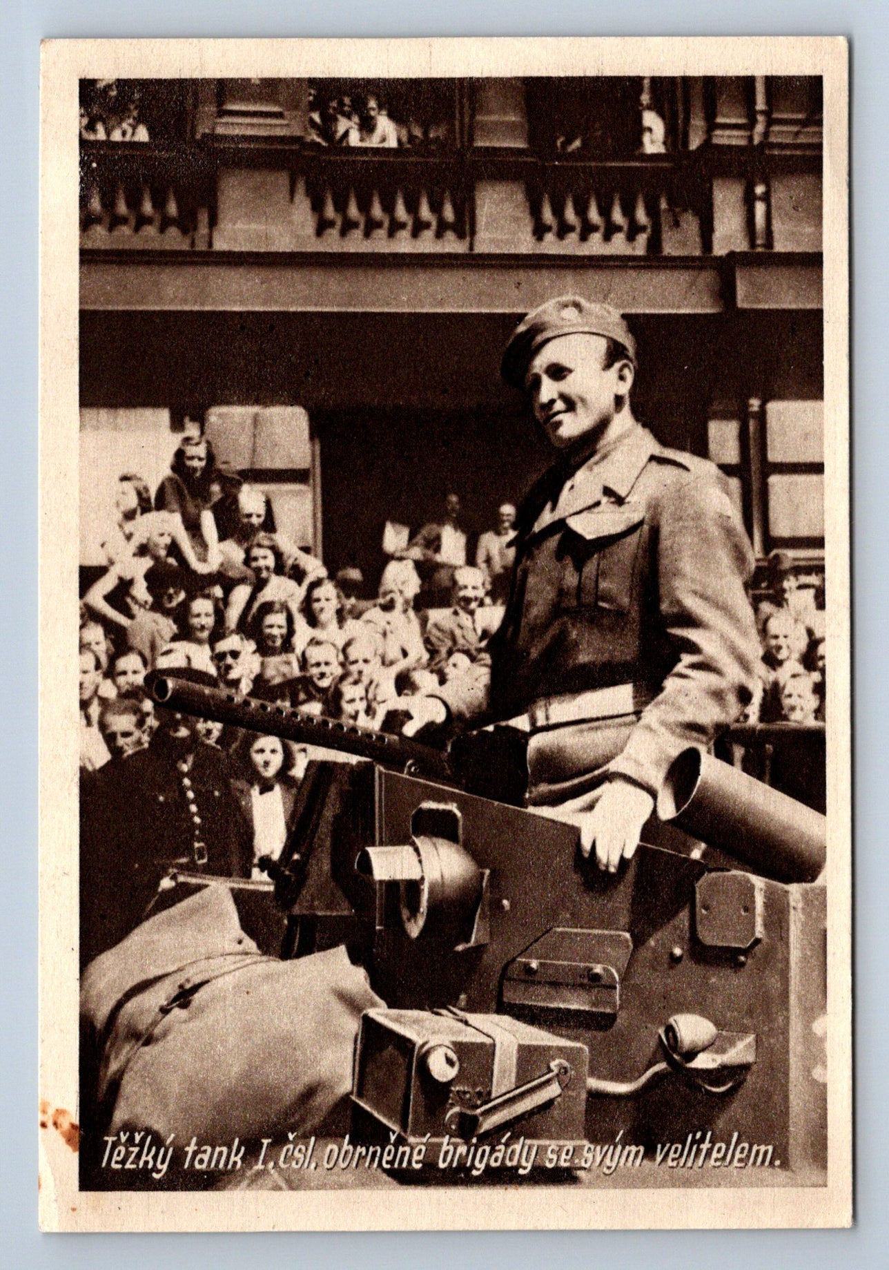 Pohlednice TĚŽKÝ TANK I. ČESKOSLOV. OBRNĚNÉ BRIGÁDY SE SVÝN VELITELEM (ST563)