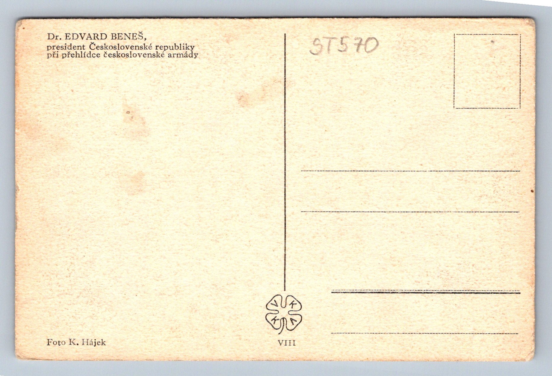 Pohlednice DR. EDVARD BENEŠ, PRESIDENT PRESIDENT ČESKOSLOVENSKÉ REPUBLIKY PŘI PŘEHLÍDCE ČESKOSLOVENSKÉ ARMÁDY (ST570)