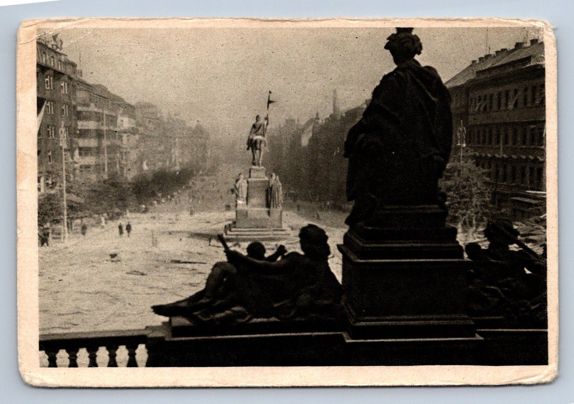 Pohlednice VÁCLAVSKÉ NÁMĚSTÍ PO BOJÍCH (ST576)