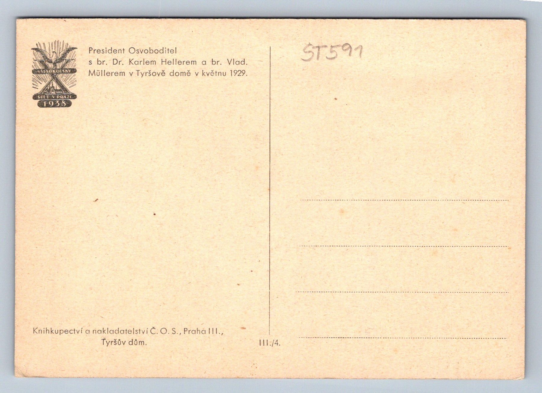 Pohlednice PRESIDENT S BR. DR. KARLEM HELLEREM V TYRŠOVĚ DOMĚ(ST591)