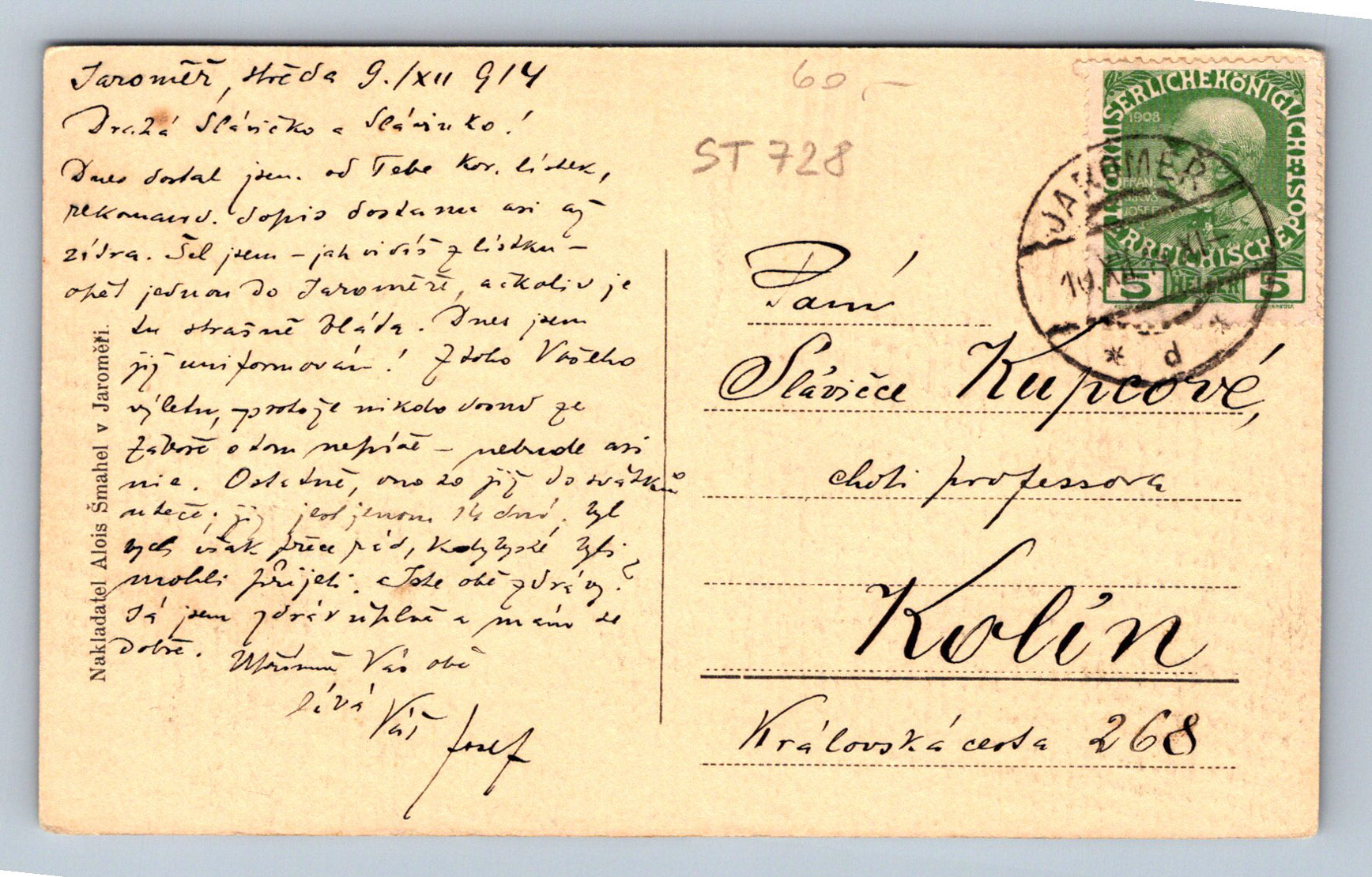 Pohlednice JAROMĚŘ - HOTEL JULIŠ (ST728)