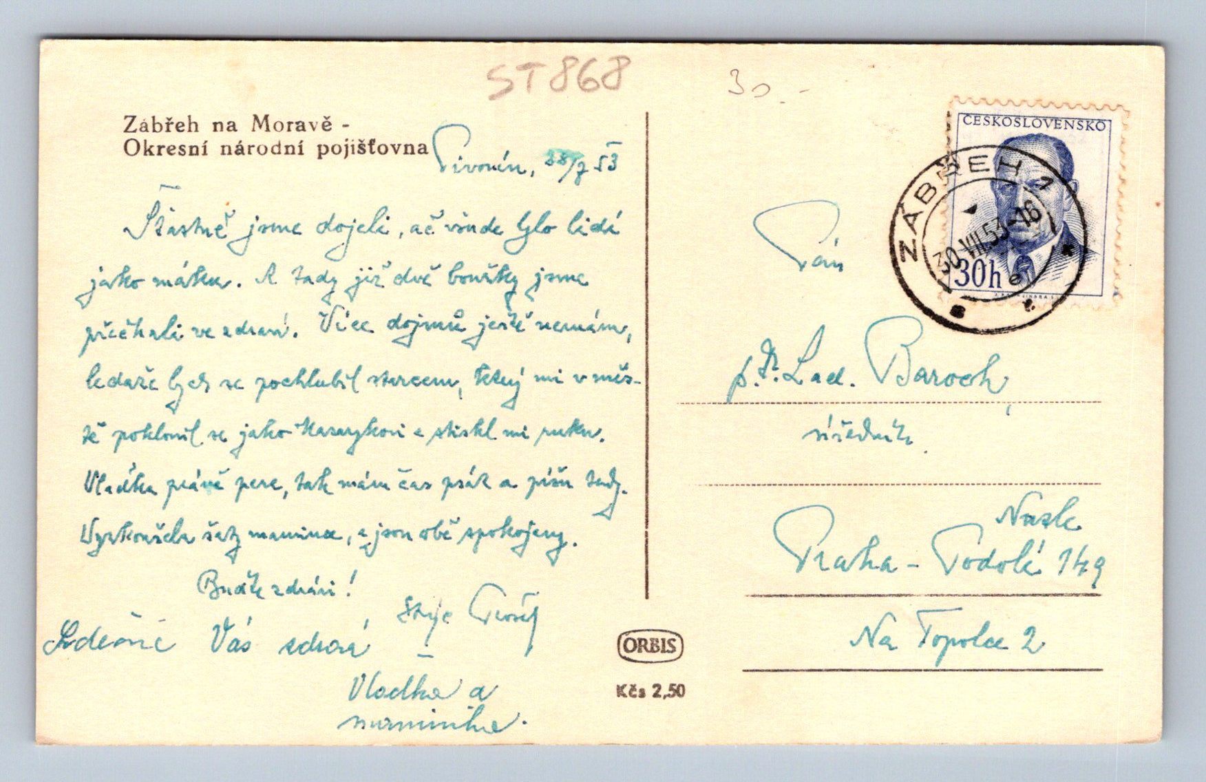 Pohlednice ZÁBŘEH NA MORAVĚ - OKRESNÍ NÁRODNÍ POJIŠTOVNA (ST868)