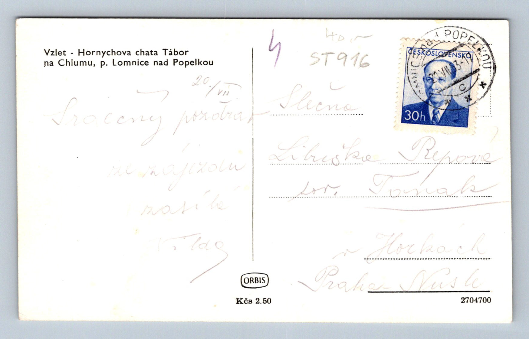 Pohlednice VZLET - HORNYCHOVA CHATA TÁBOR NA CHLUMU (ST916)