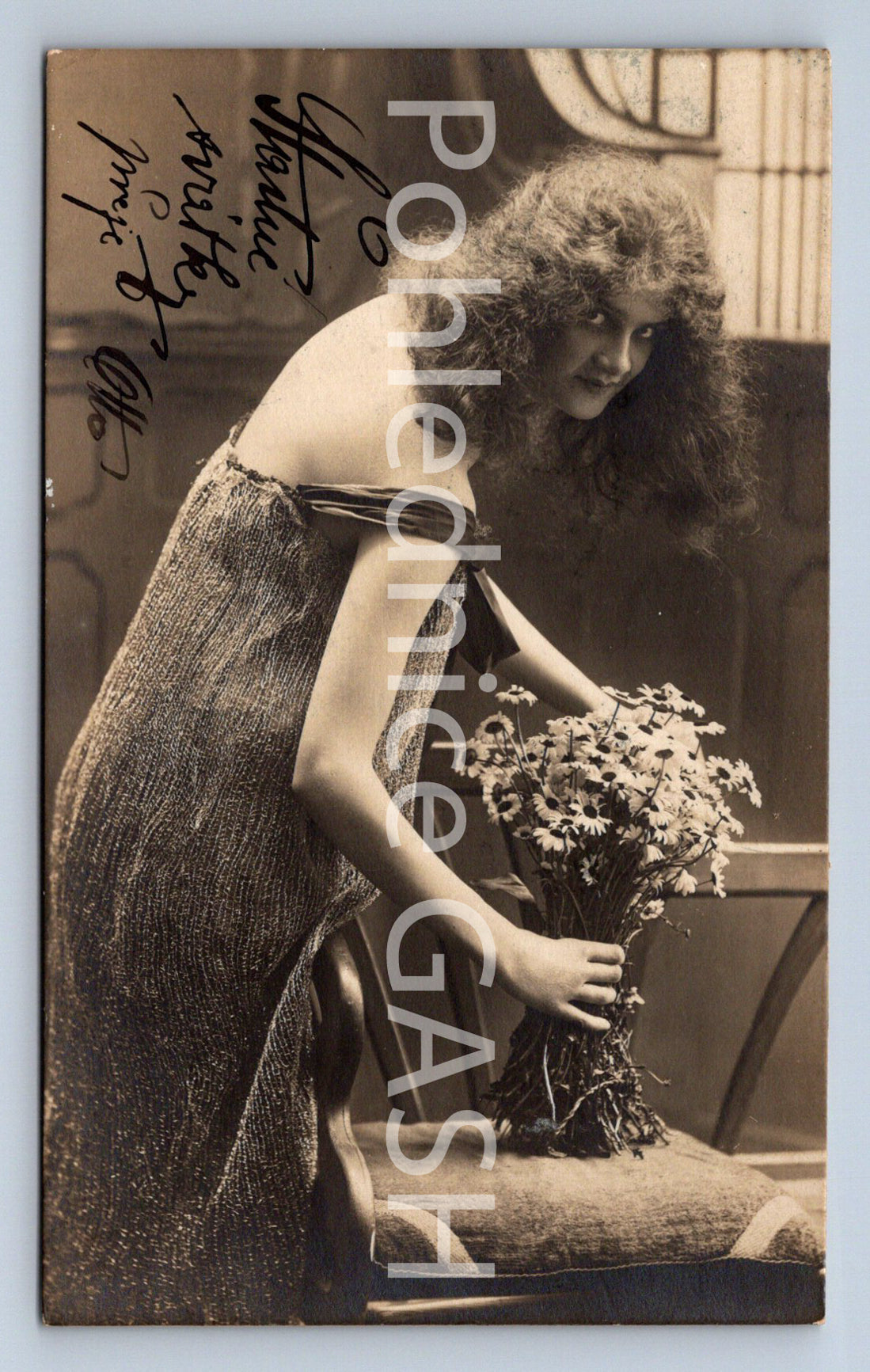 Pohlednice ŽENA S KVĚTINOU (ST9622)