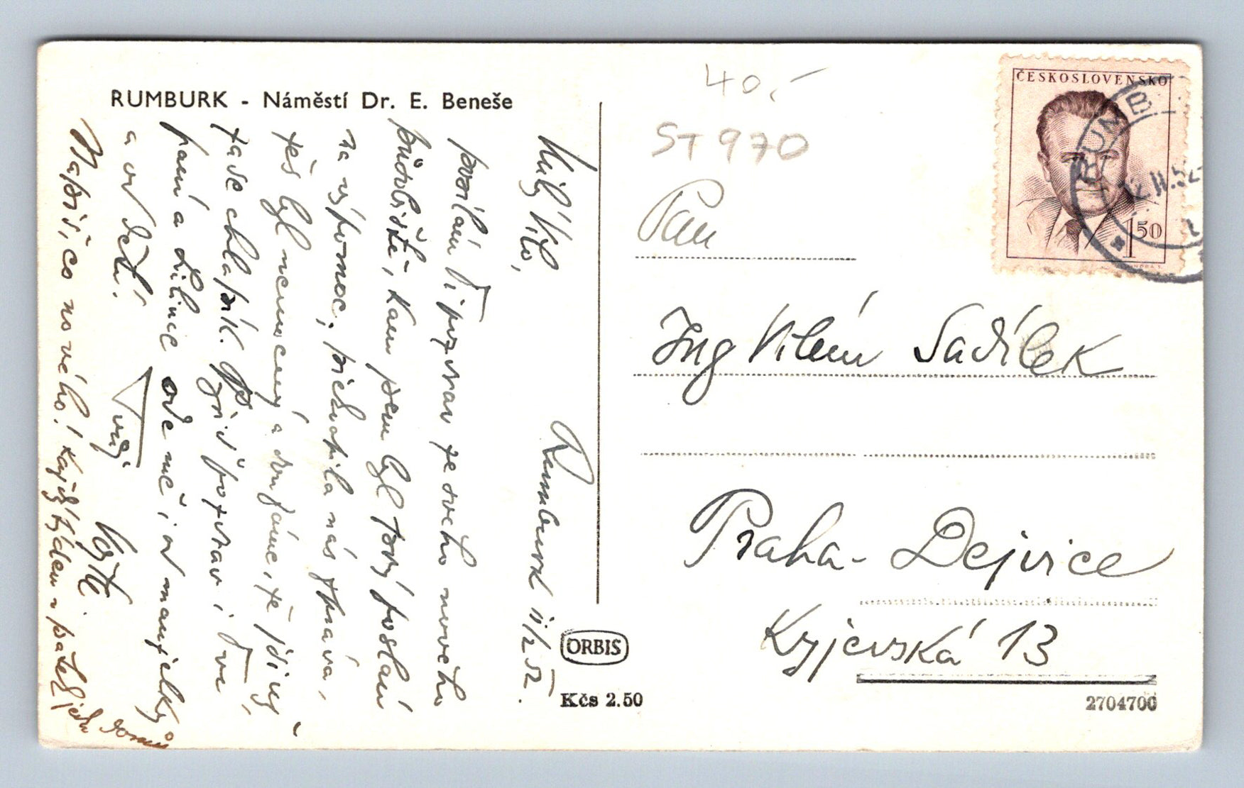 Pohlednice RUMBURK - NÁMĚSTÍ DR. E. BENEŠE (ST970)