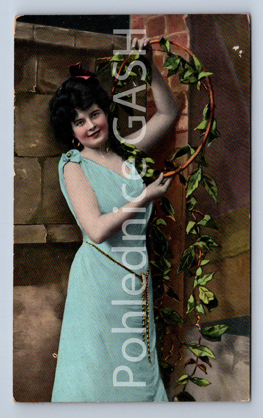 Pohlednice ŽENA S LÍSTKY (ST9794)