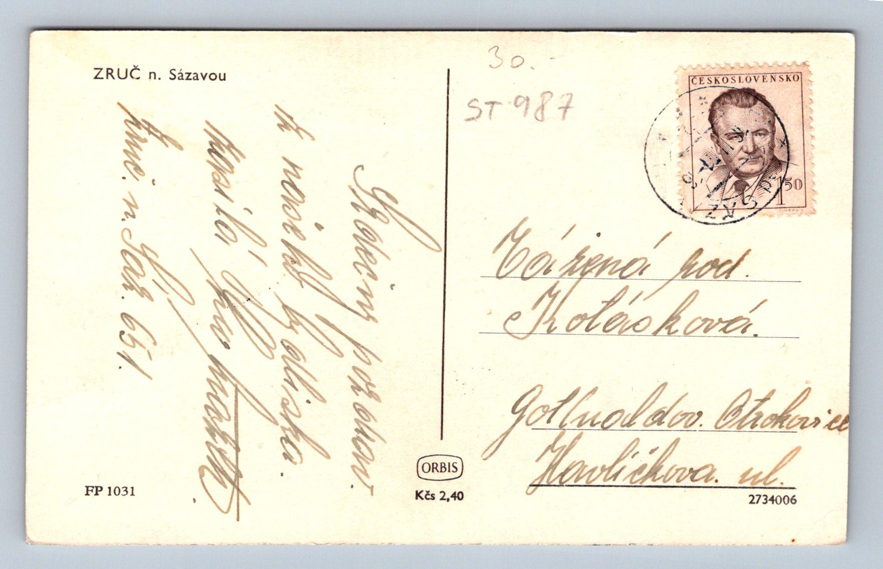 Pohlednice ZRUČ NAD SÁZAVOU (ST987)