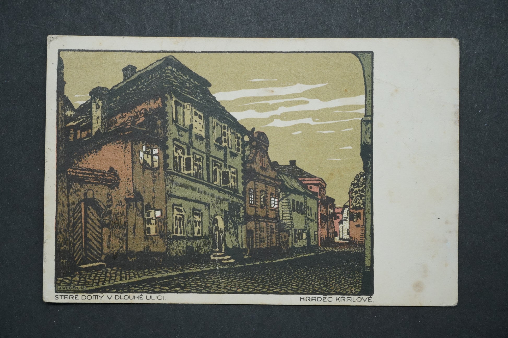 Pohlednice Hradec Králové staré domy v dlouhé ulici x10243