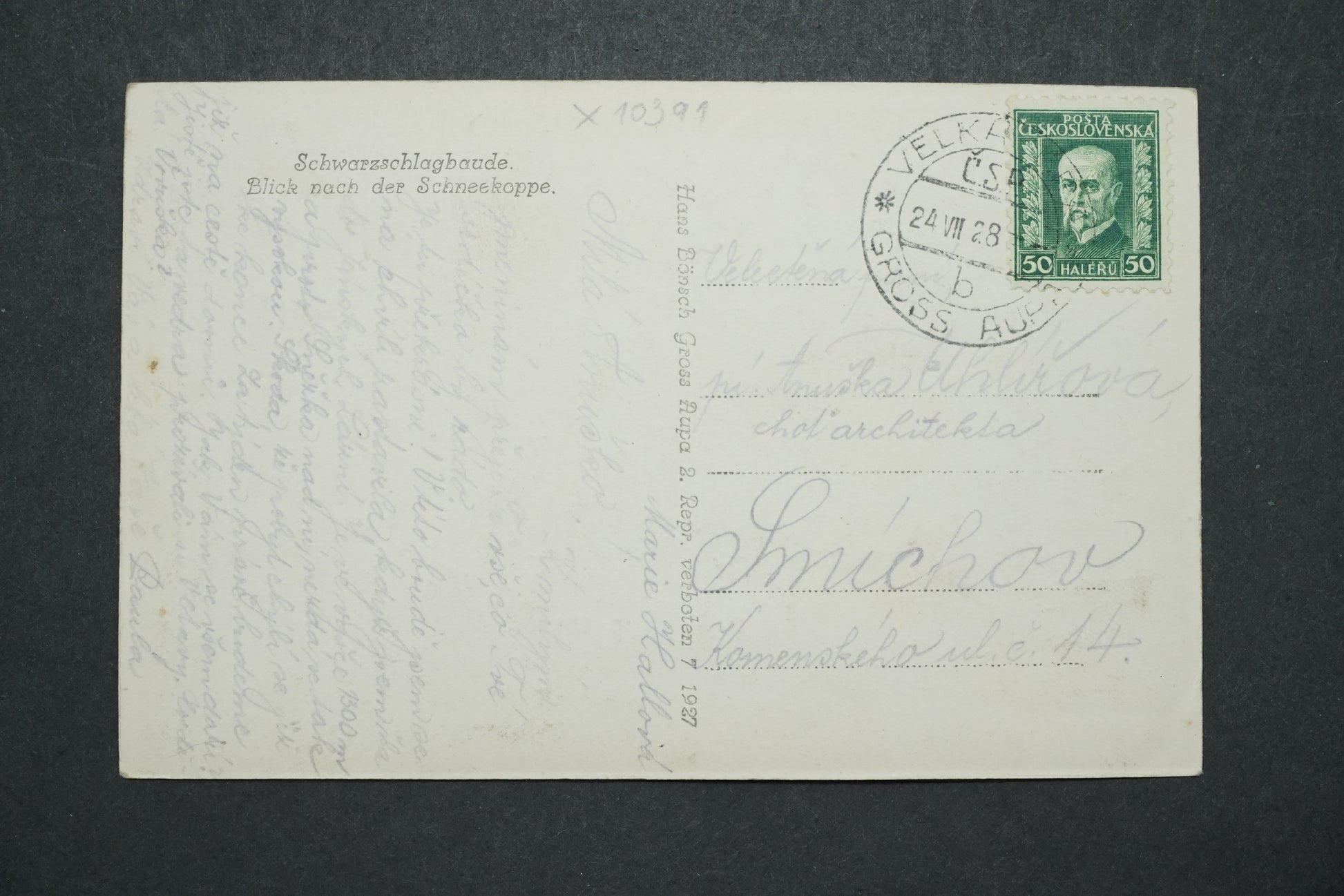 Pohlednice Schwarzschlagbaude Blick nach der Schneekoppe x10391