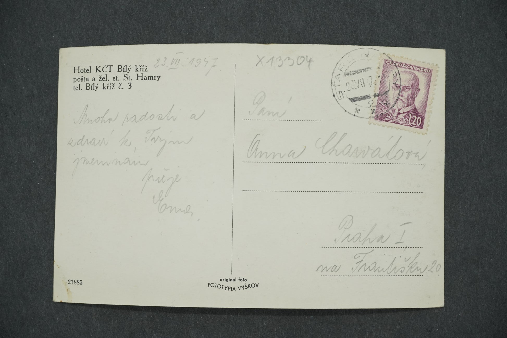 Pohlednice HOTEL KČT BÍLÝ KŘÍŽ POŠTA A ŽEL. ST. ST. HAMRY (x13304)