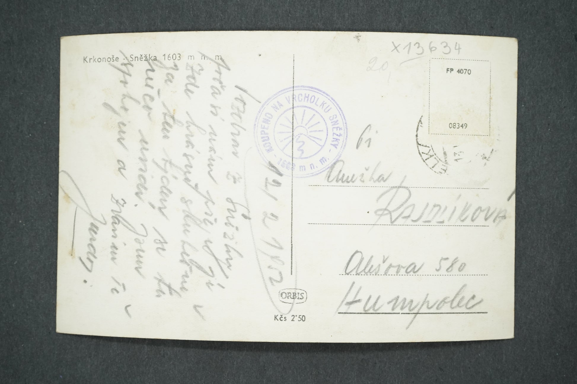 Pohlednice KRKONOŠE SNĚŽKA (x13634)
