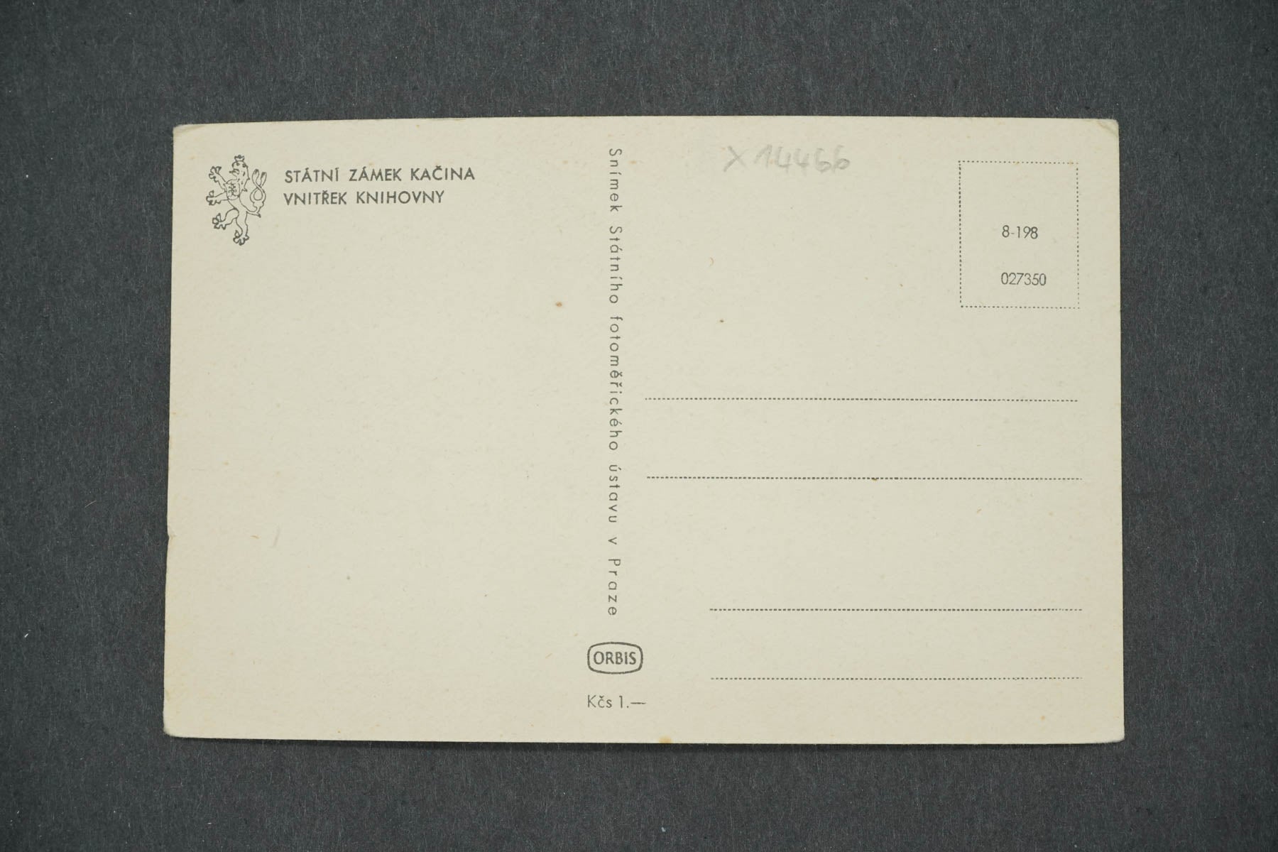 Pohlednice STÁTNÍ ZÁMEK KAČINA VNITŘEK KNIHOVNY (x14466)