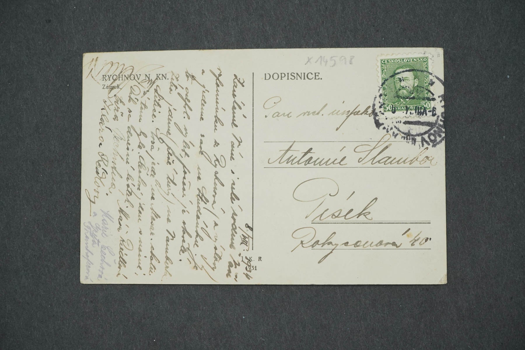 Pohlednice RYCHNOV NAD KNĚŽNOU ZÁMEK (x14598)