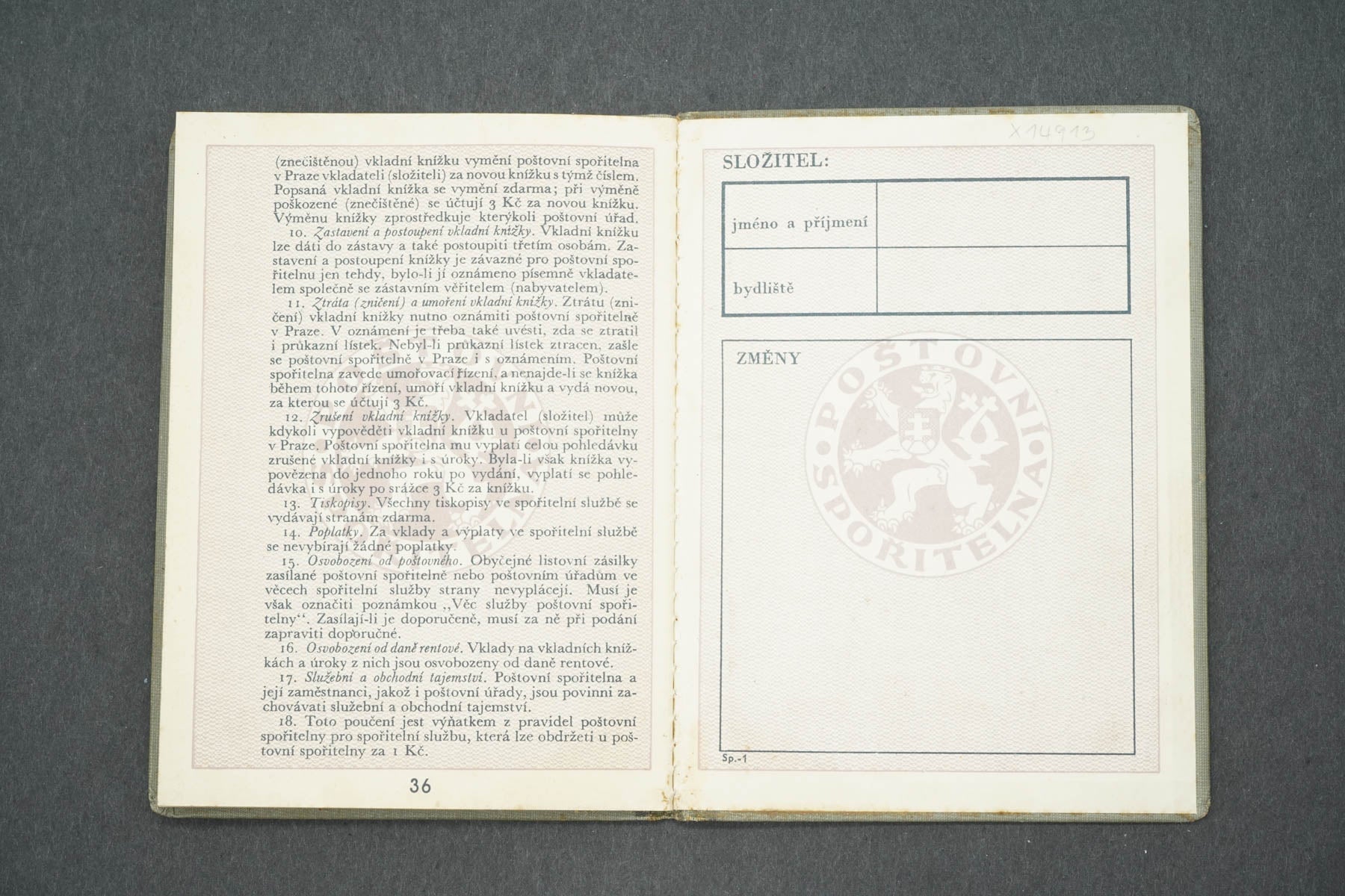 VKLADNÍ KNÍŽKA POŠTOVNÍ SPOŘITELNA (x14913)