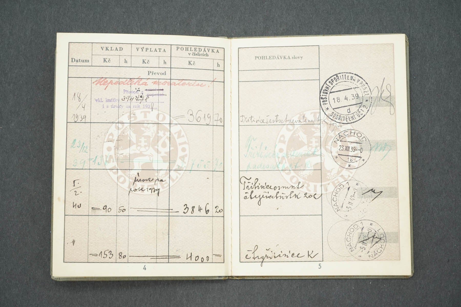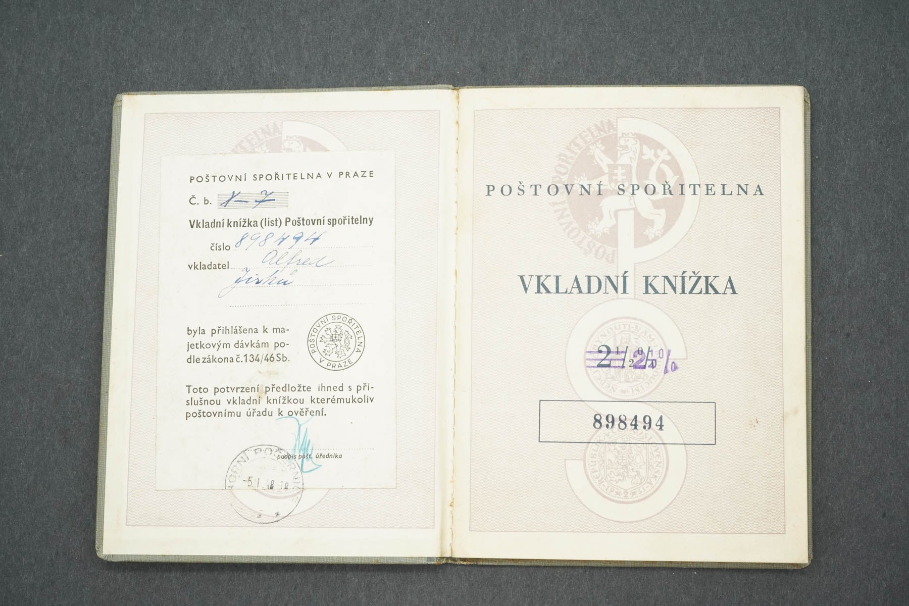 VKLADNÍ KNÍŽKA POŠTOVNÍ SPOŘITELNA