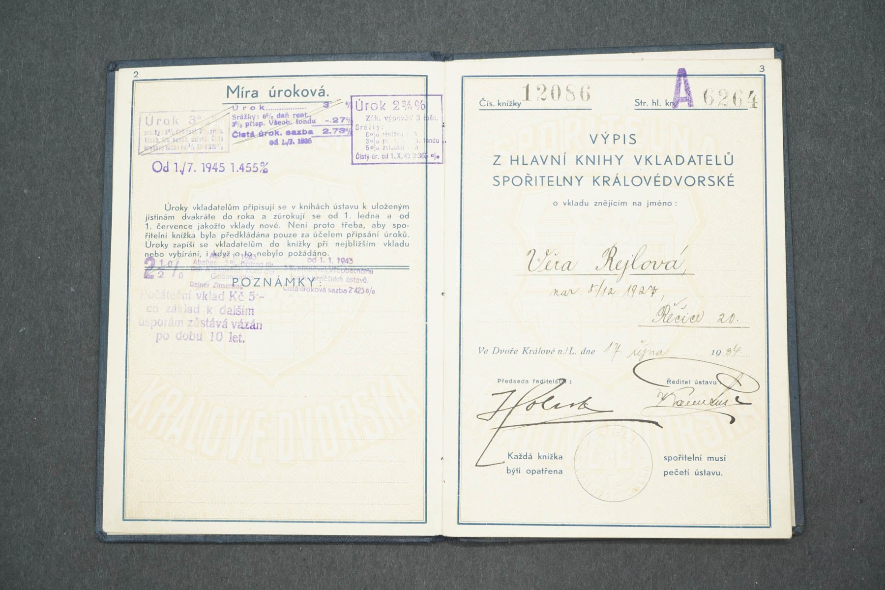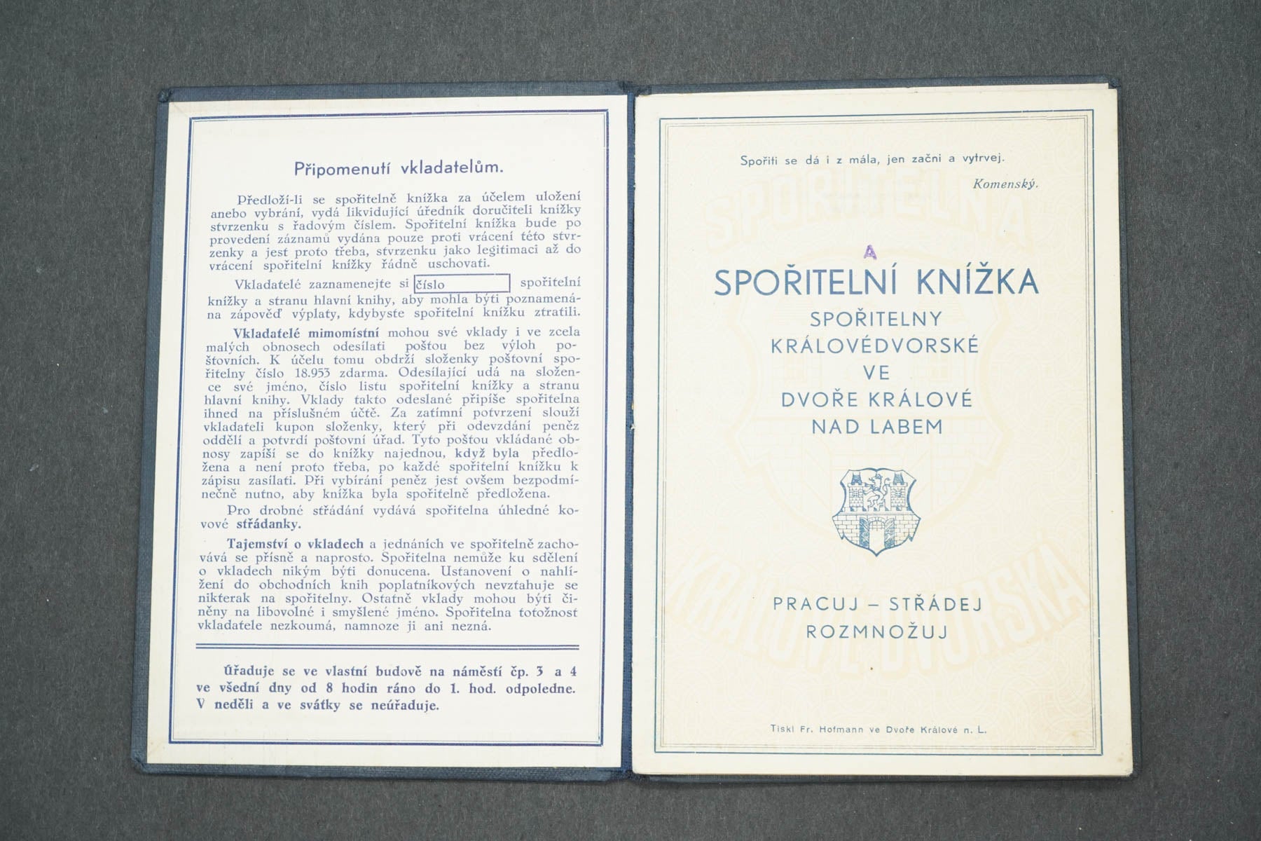 SPOŘITELNA KRÁLOVÉDVORSKÁ SPOŘITELNÍ KNÍŽKA