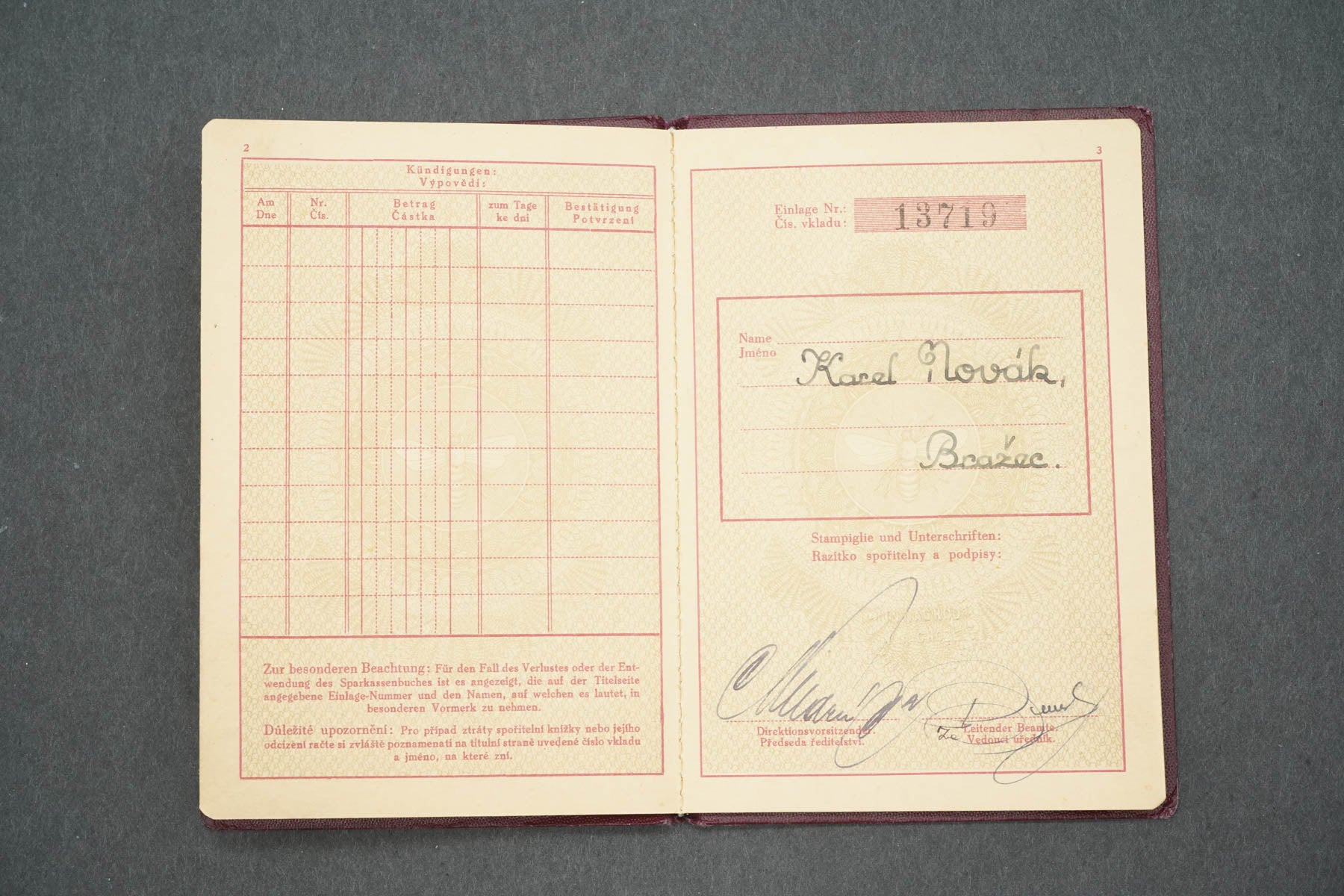 SPOŘITELNÍ KNÍŽKA SPOŘITELNA MĚSTSKÁ V NÁCHODĚ