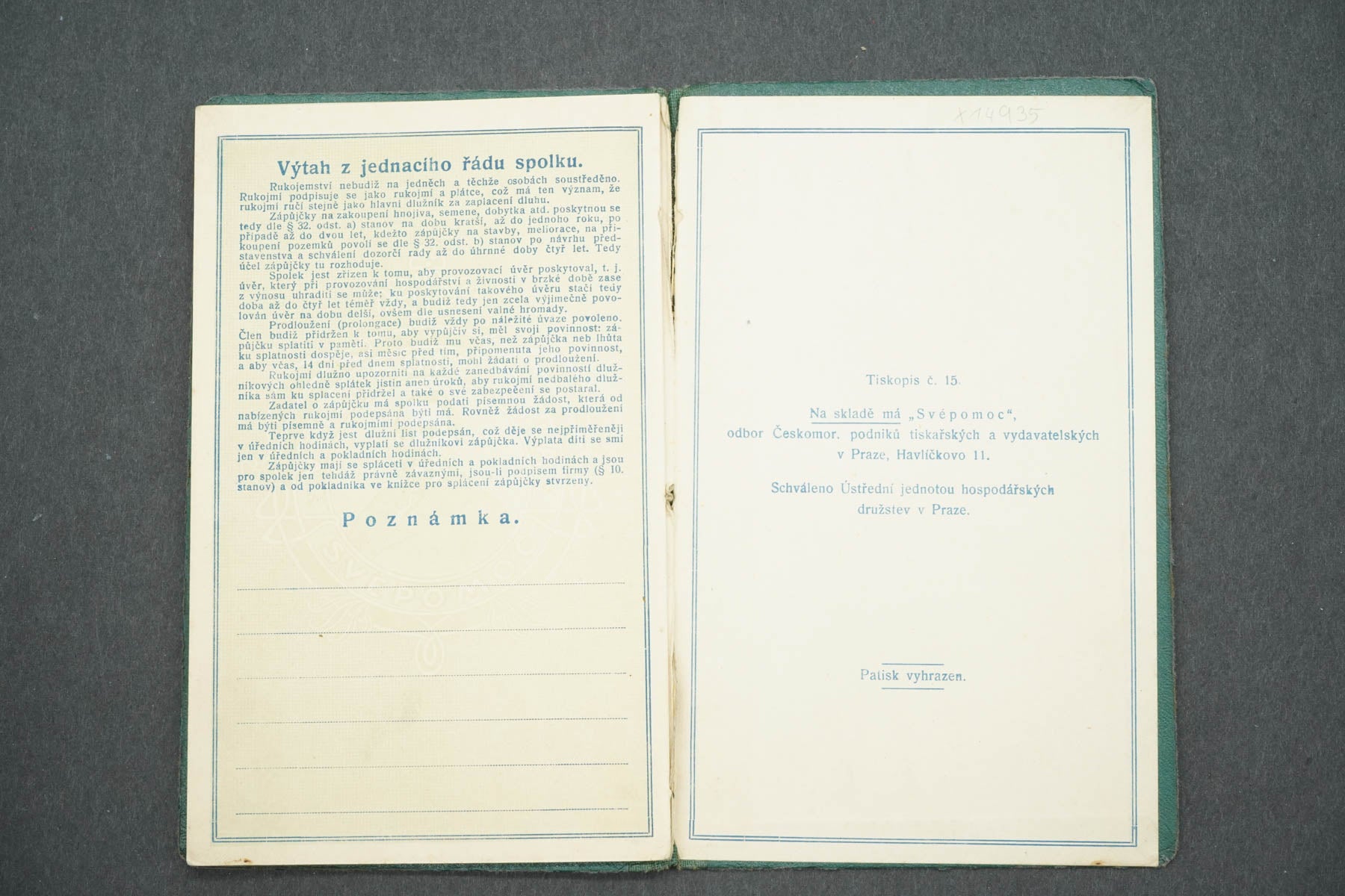 ČLENSKÁ KNÍŽKA SPORITELNÍHO A ZÁLOŽNÍHO SPOLKU VE RTYNI PODKRKONOŠI