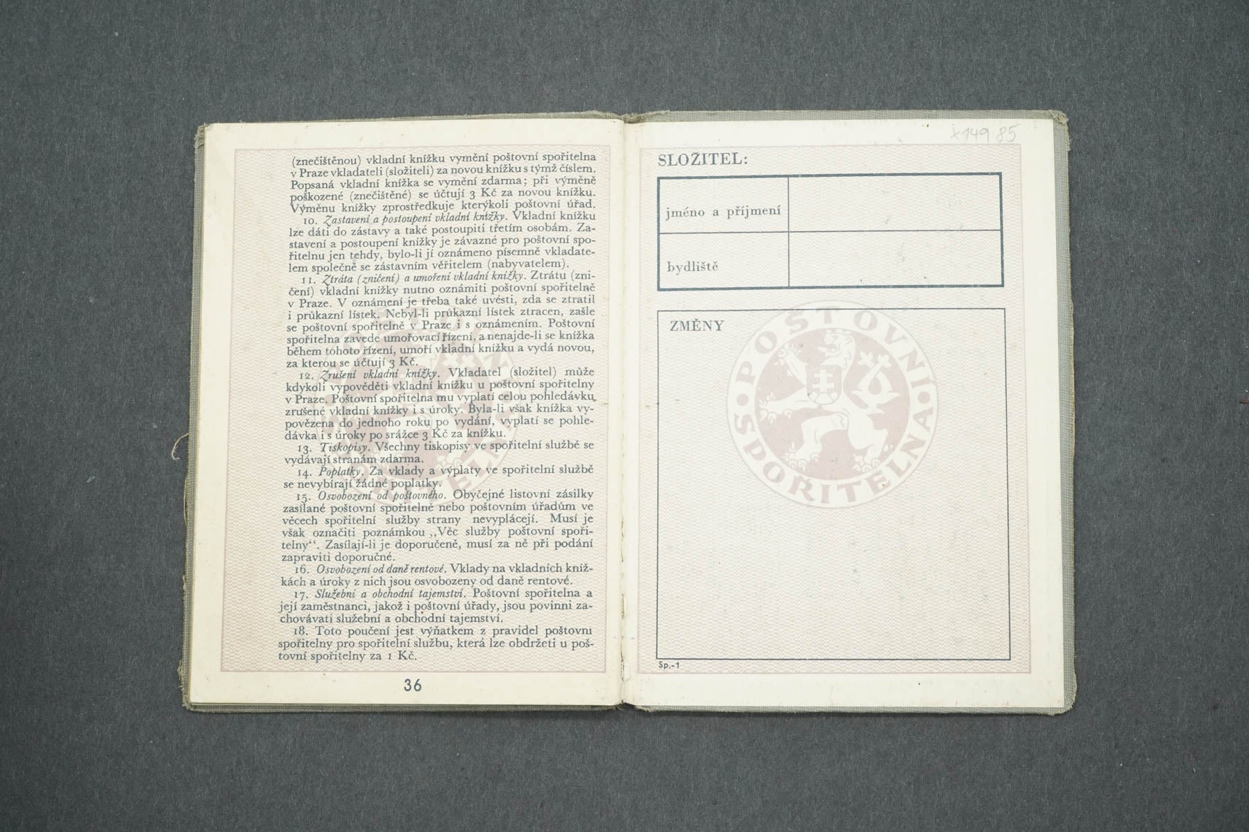 VKLADNÍ KNÍŽKA POŠTOVNÍ SPOŘITELNA (x14985)