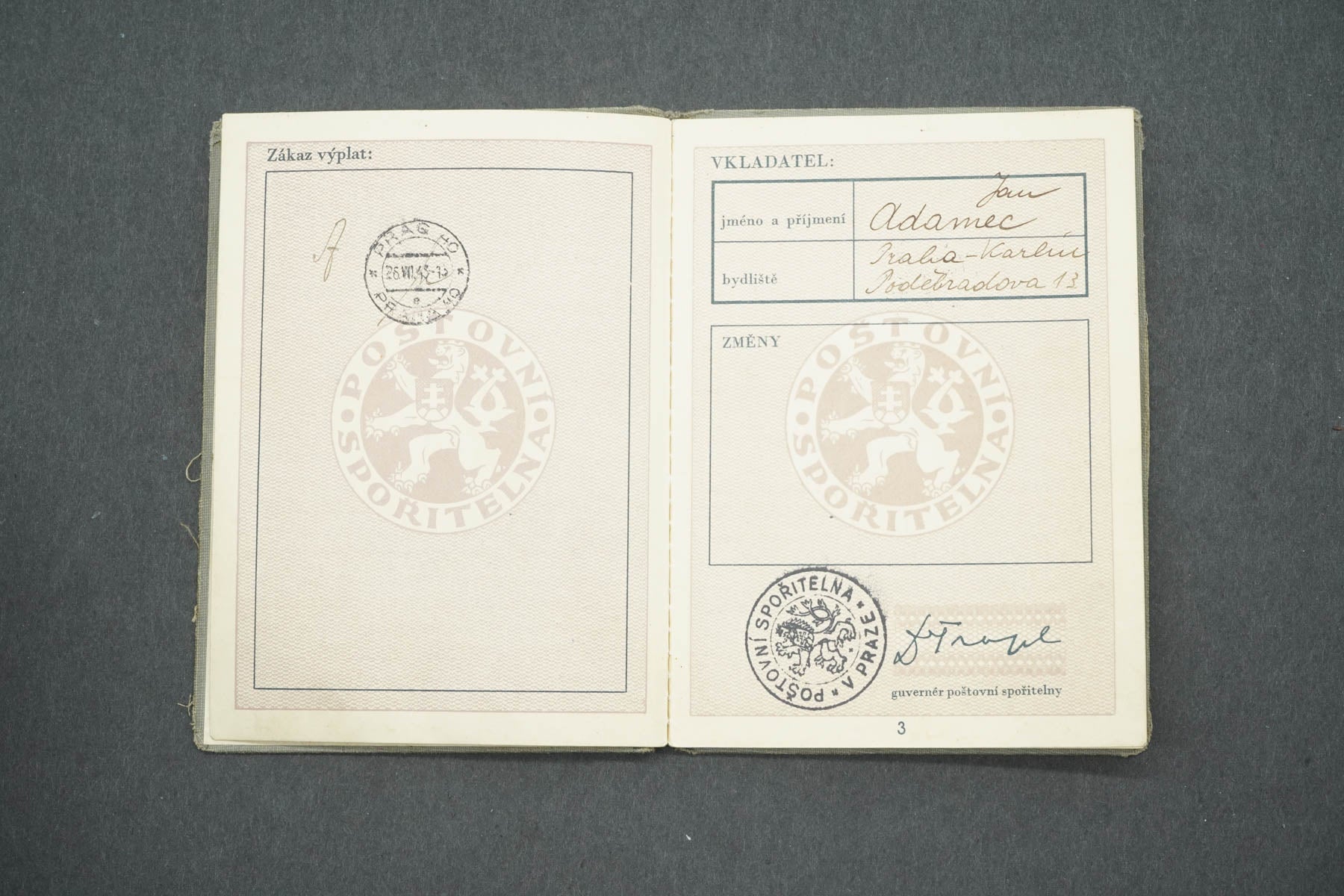 VKLADNÍ KNÍŽKA POŠTOVNÍ SPOŘITELNA