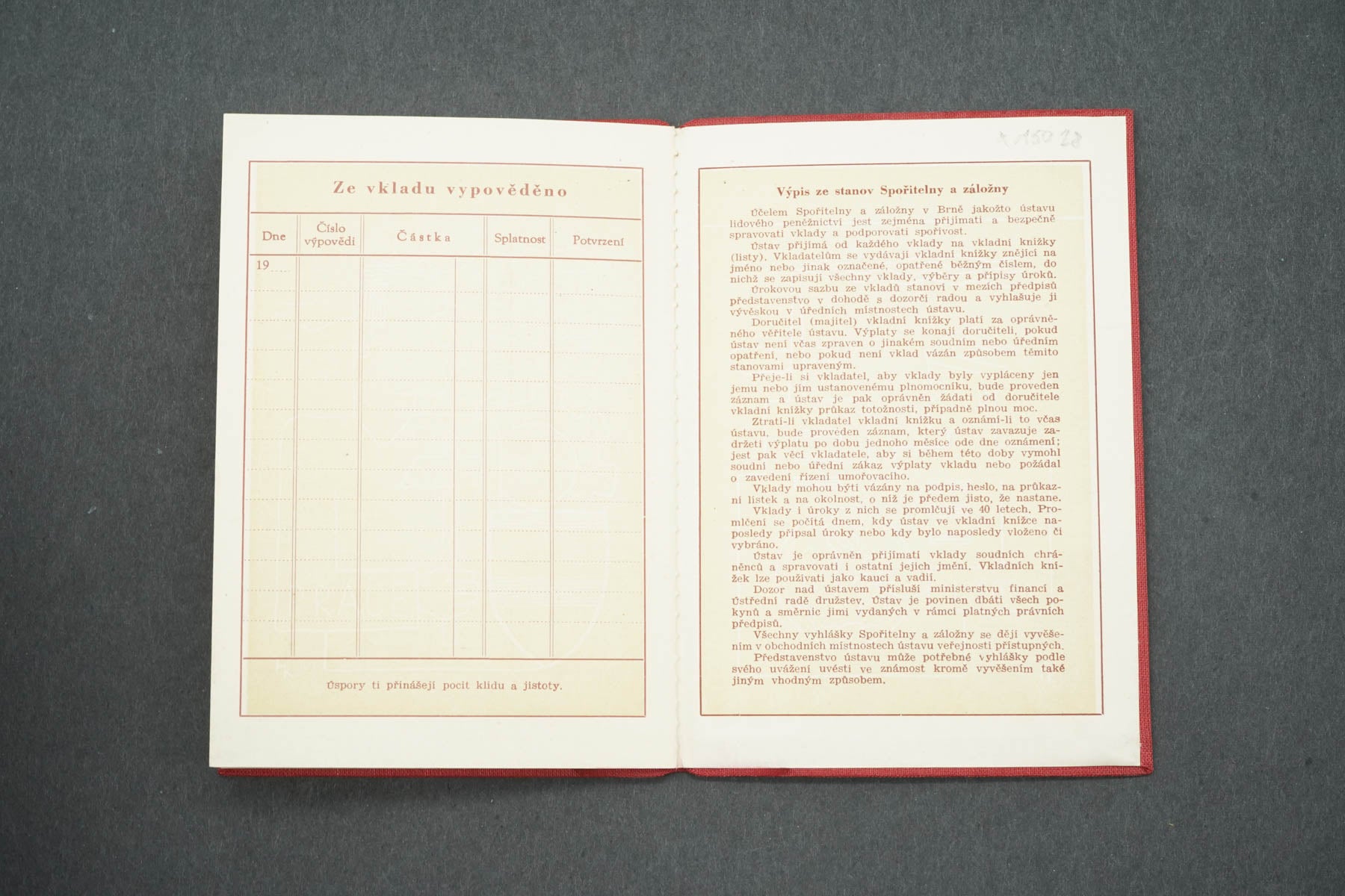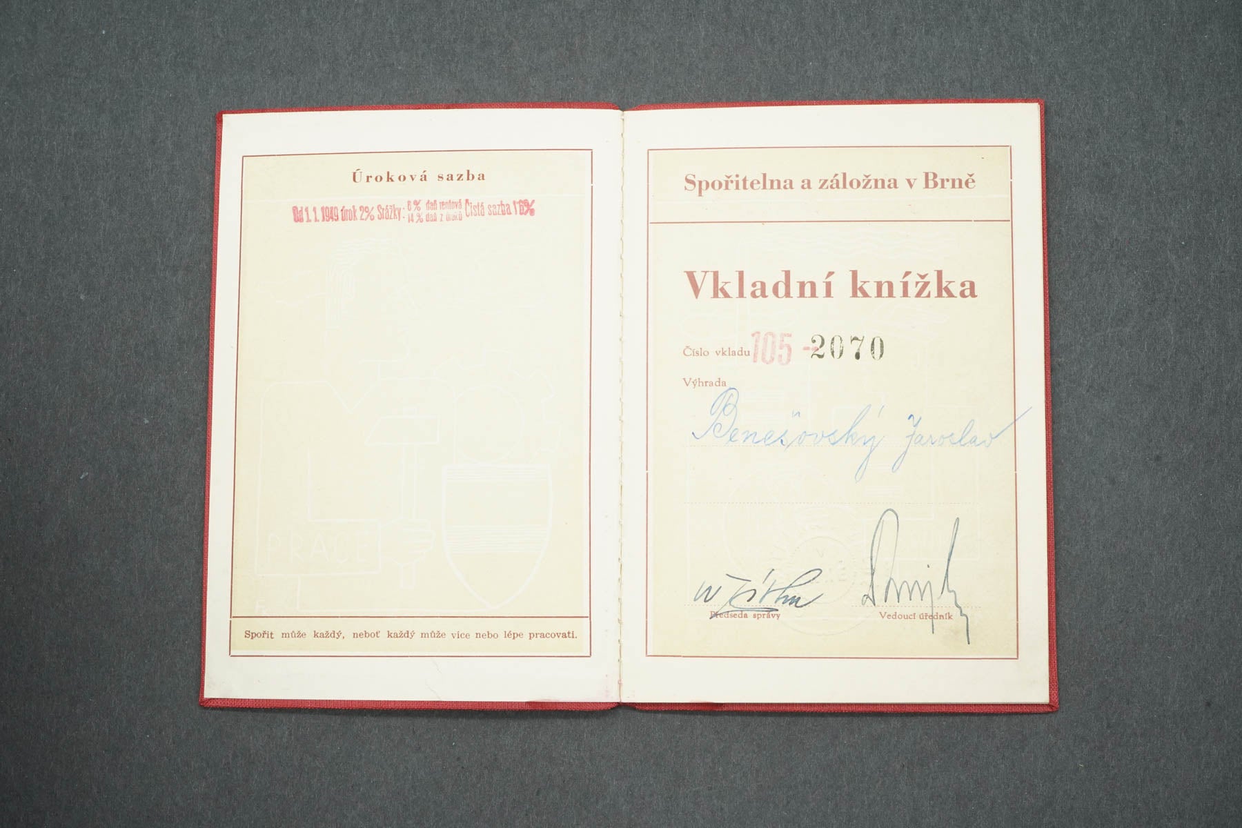 VKLADNÍ KNÍŽKA SPOŘITELNA A ZÁLOŽNA V BRNĚ