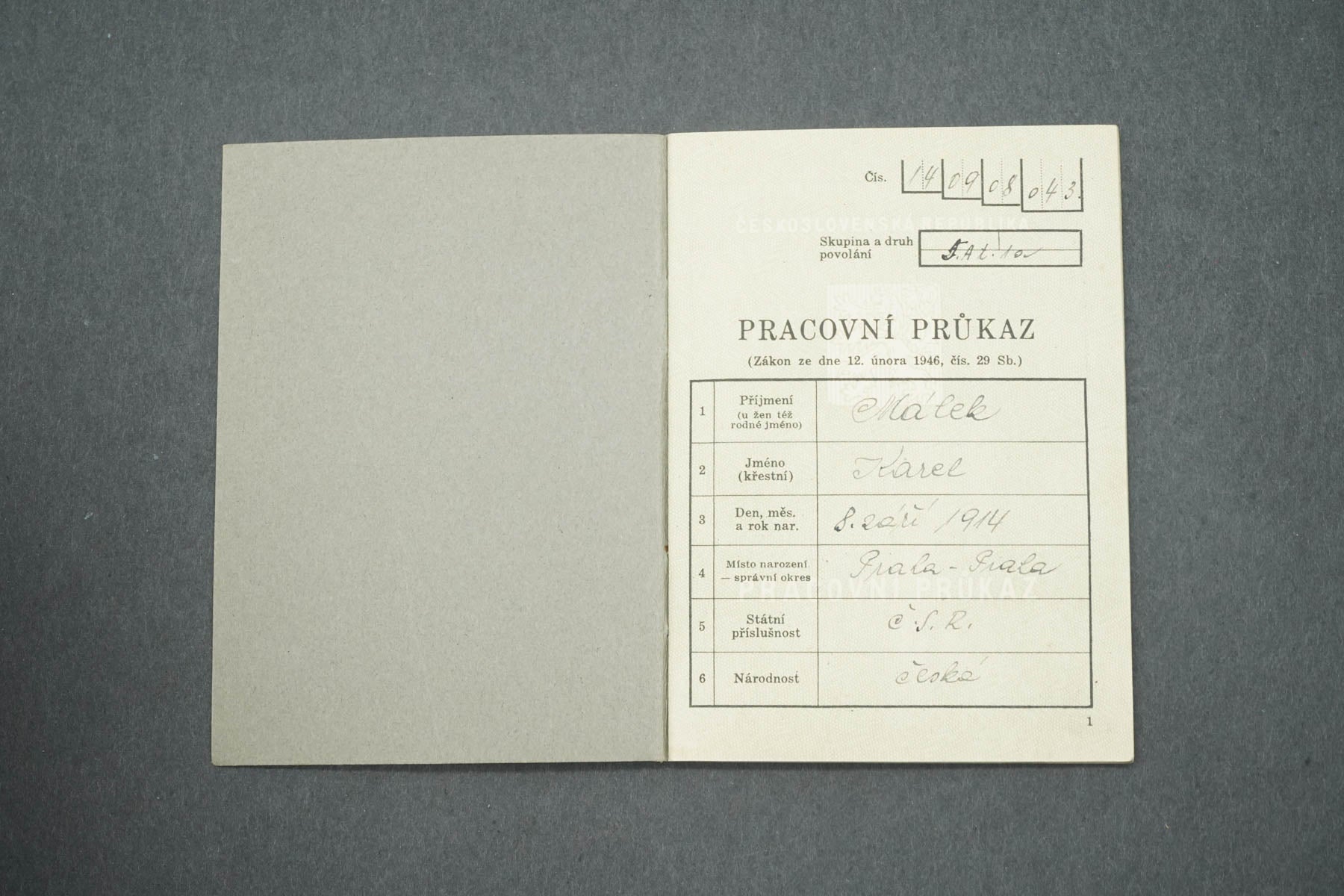 PRACOVNÍ PRŮKAZ ČESKOSLOVENSKÁ REPUBLIKA