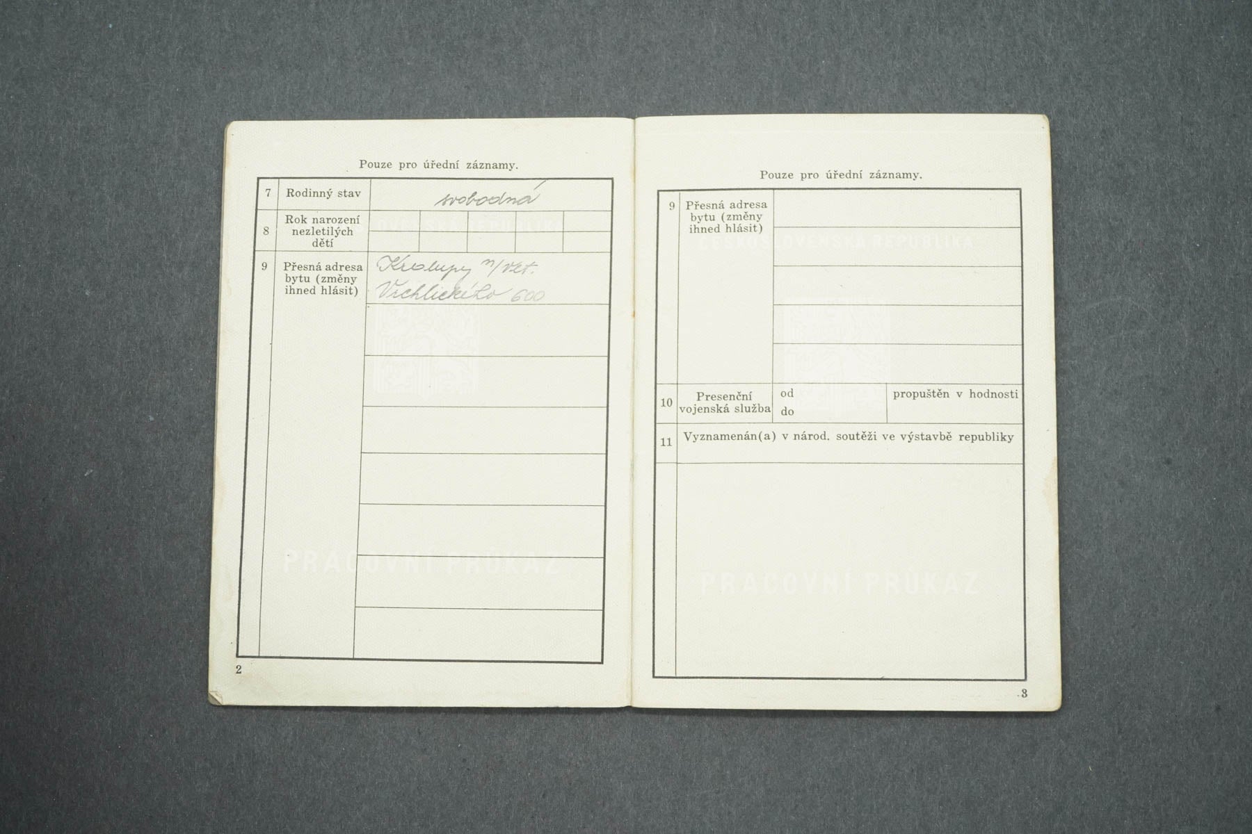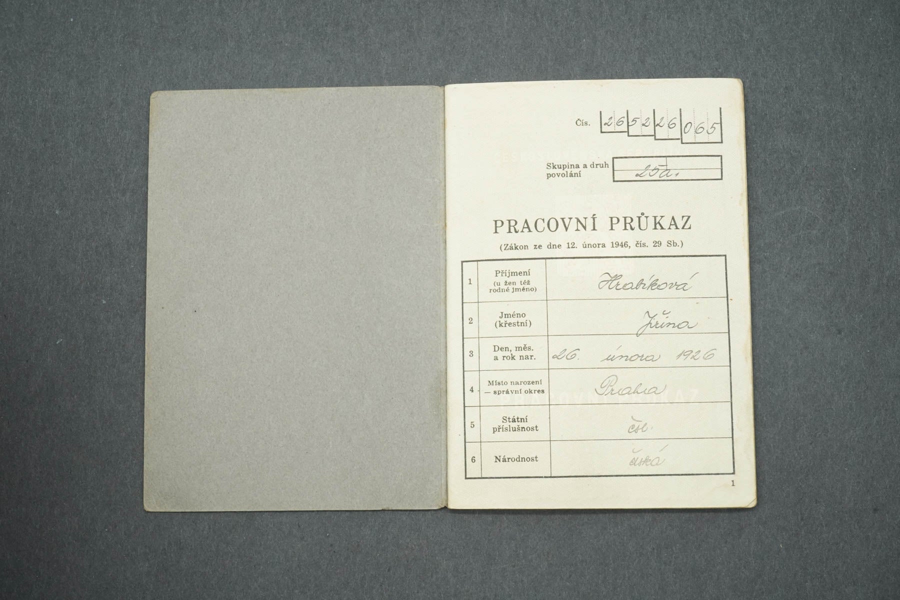 PRACOVNÍ PRŮKAZ ČESKOSLOVENSKÁ REPUBLIKA