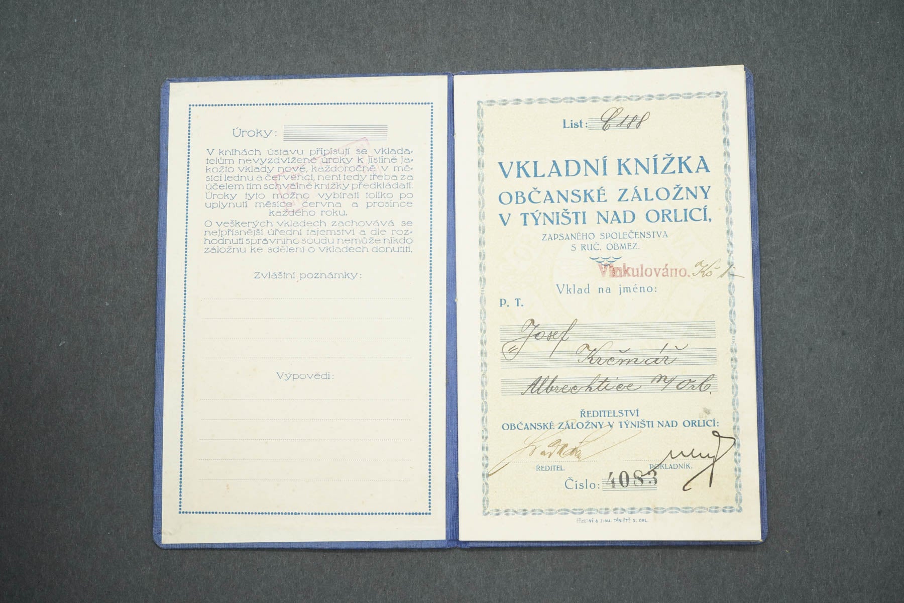 VKLADNÍ KNÍŽKA OBČANSKÉ ZÁLOŽNY V TÝNIŠTI NAD ORLICÍ
