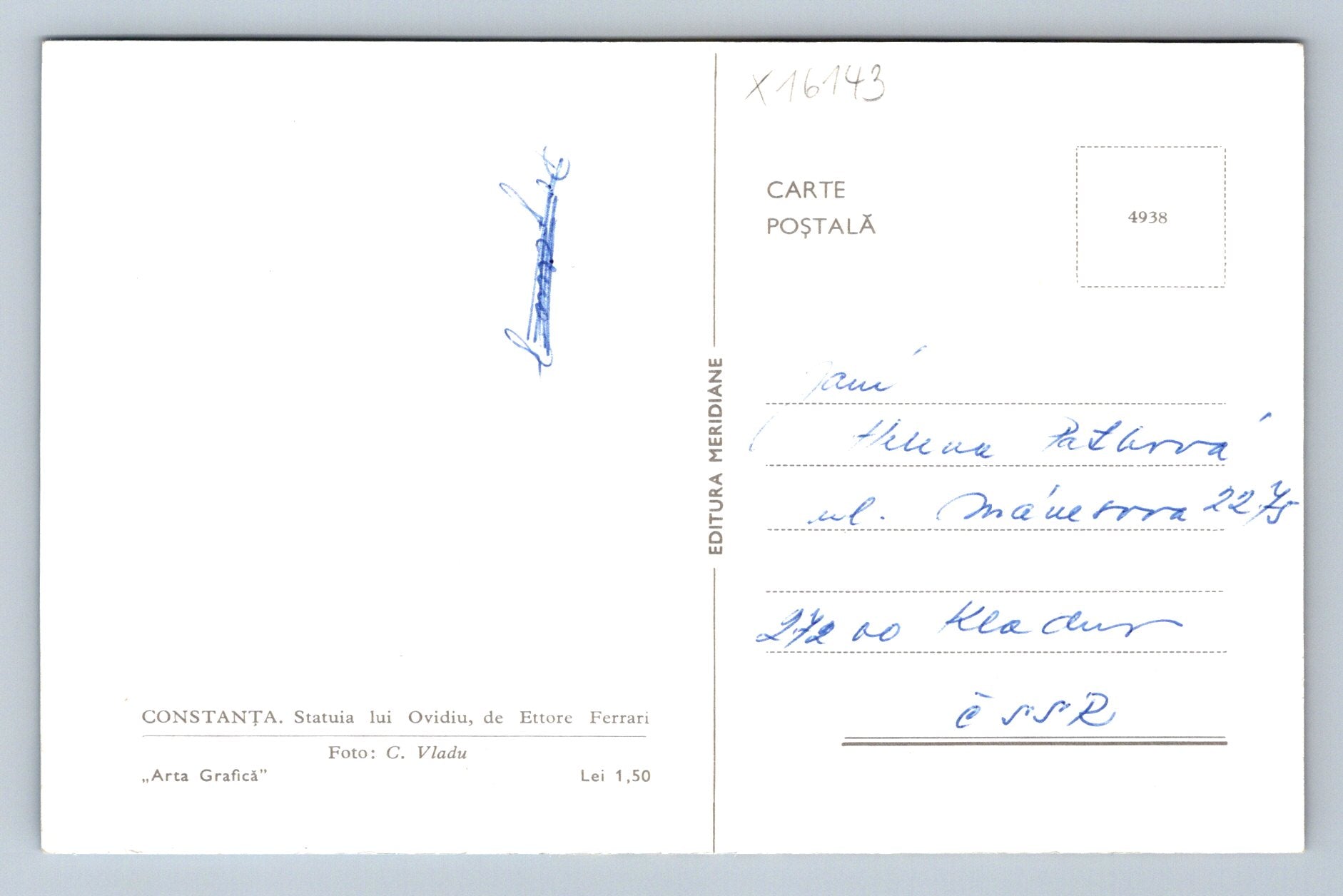Pohlednice CONSTANTA. STATUIA LUI OVIDIU, DE ETTORE FERRARI (x16143)