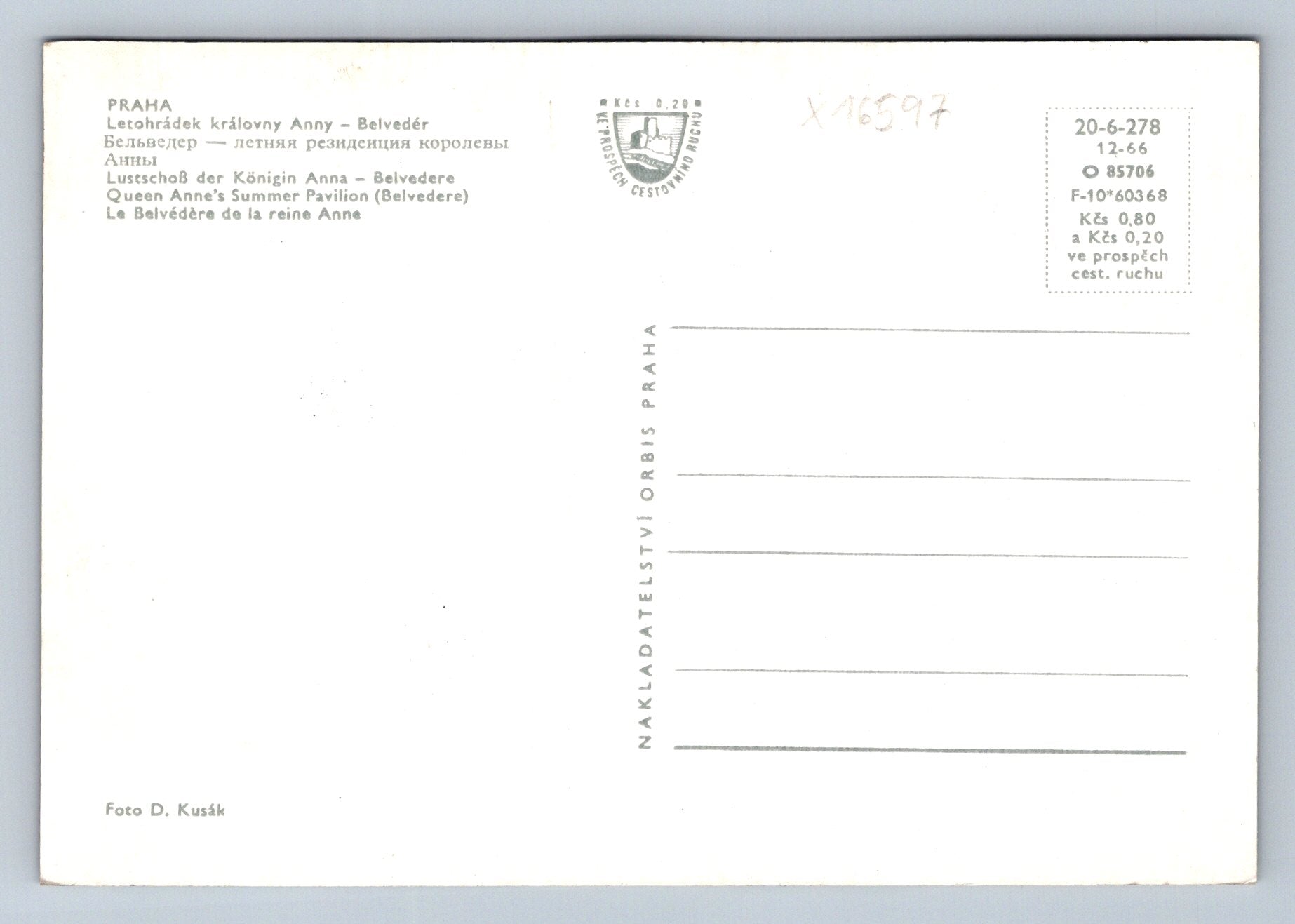 Pohlednice PRAHA - LETOHRÁDEK KRÁLOVNY ANNY - BELVEDÉR (x16597)