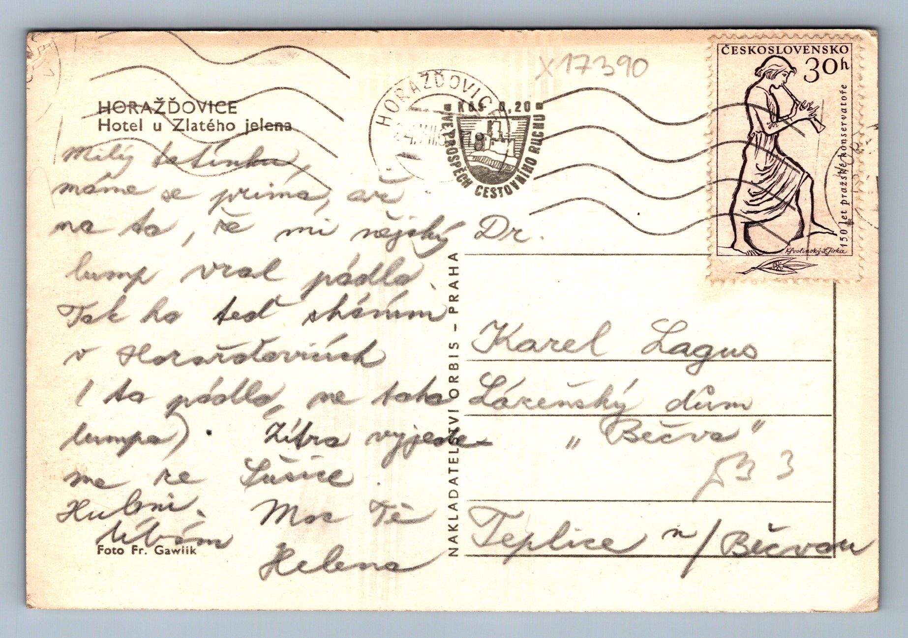 Pohlednice HORAŽĎOVICE HOTEL U ZLATÉHO JELENA (x17390)