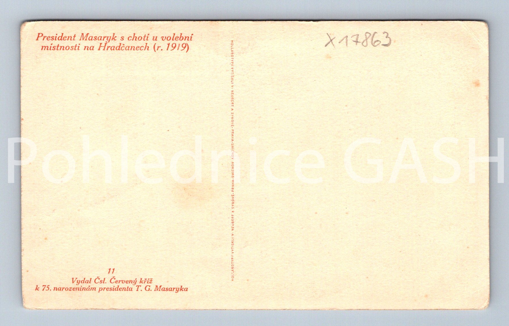 Pohlednice T.G.M. S CHOTÍ U VOLEBNÍ MÍSTNOSTI NA HRADČANECH R. 1919 (x17863)