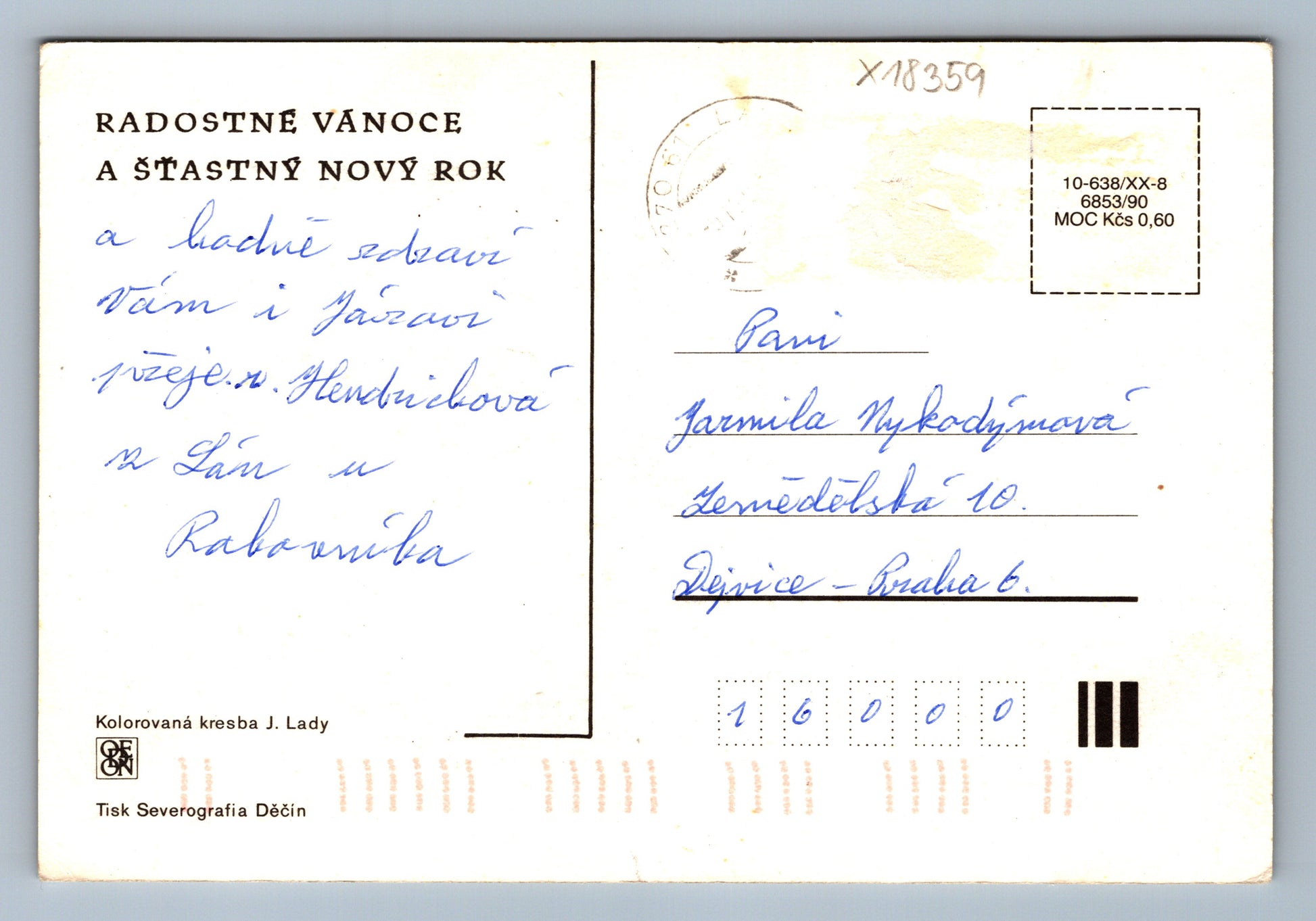 Pohlednice RADOSTNÉ VÁNOCE A ŠŤASTNÝ NOVÝ ROK PODLE J. LADY (x18359)
