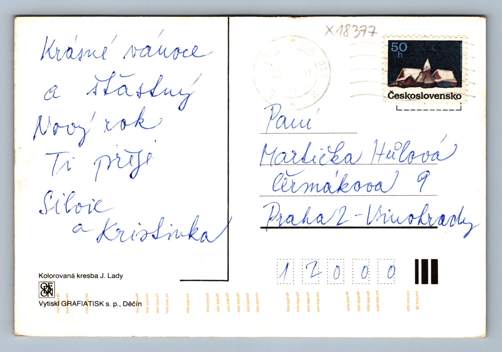 Pohlednice VÁNOCE A ŠŤASTNÝ NOVÝ ROK ZIMA PODLE J. LADY (x18377)