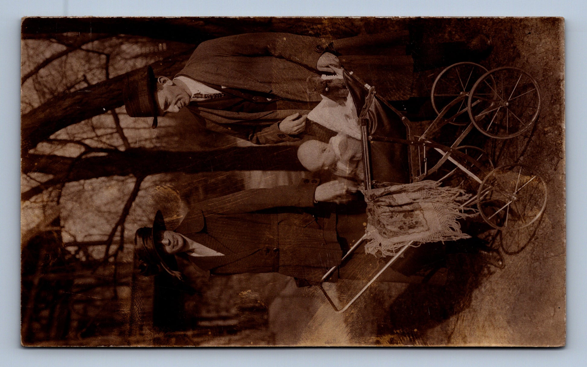 Pohlednice MANŽELÉ S DÍTĚTEM S KOČÁRKEM (x18582)