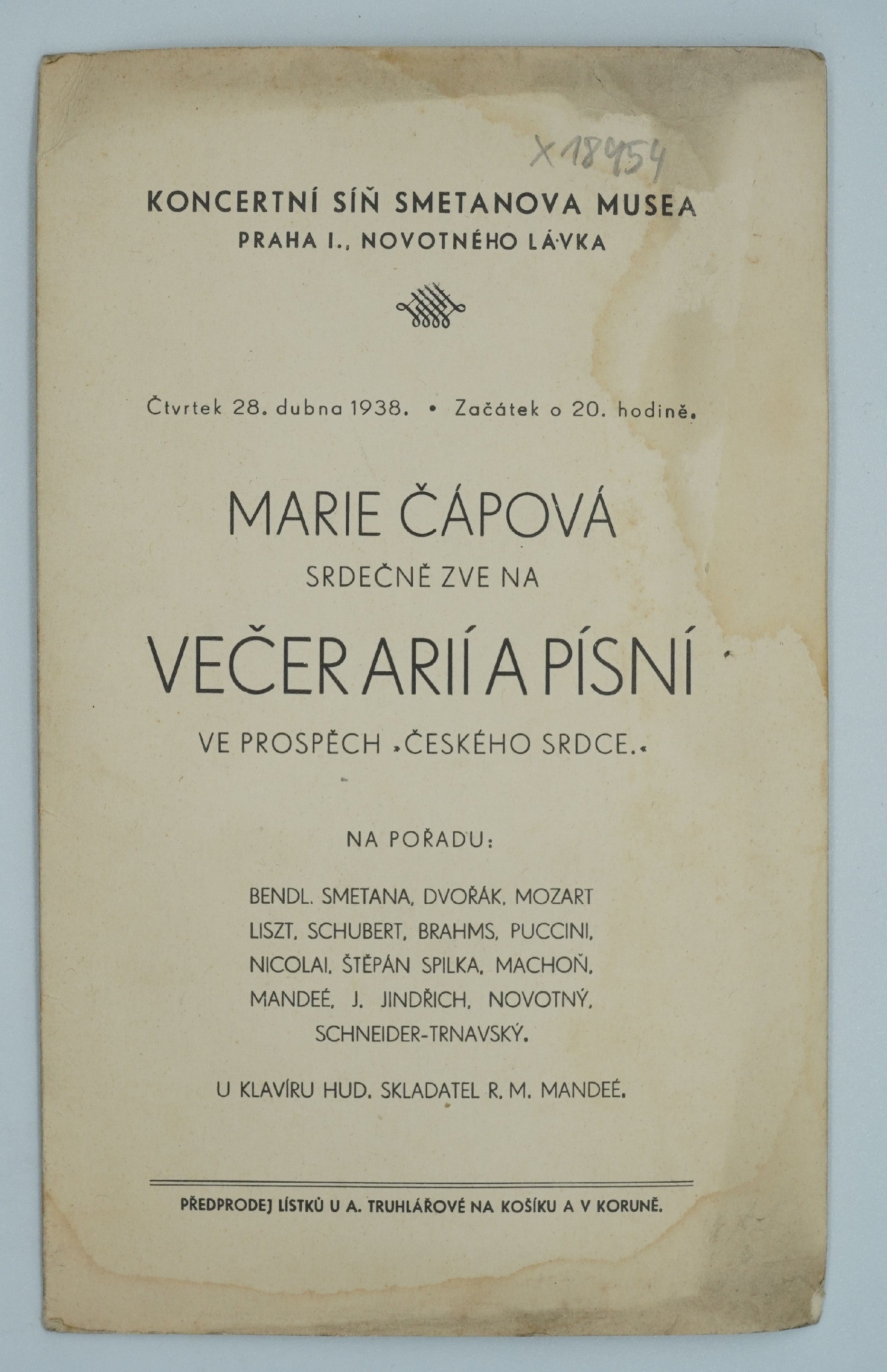 Fotografie MARIE ČÁPOVÁ SRDEČNĚ ZVE NA VEČER ARIÉ A PÍSNÍ (x18954)