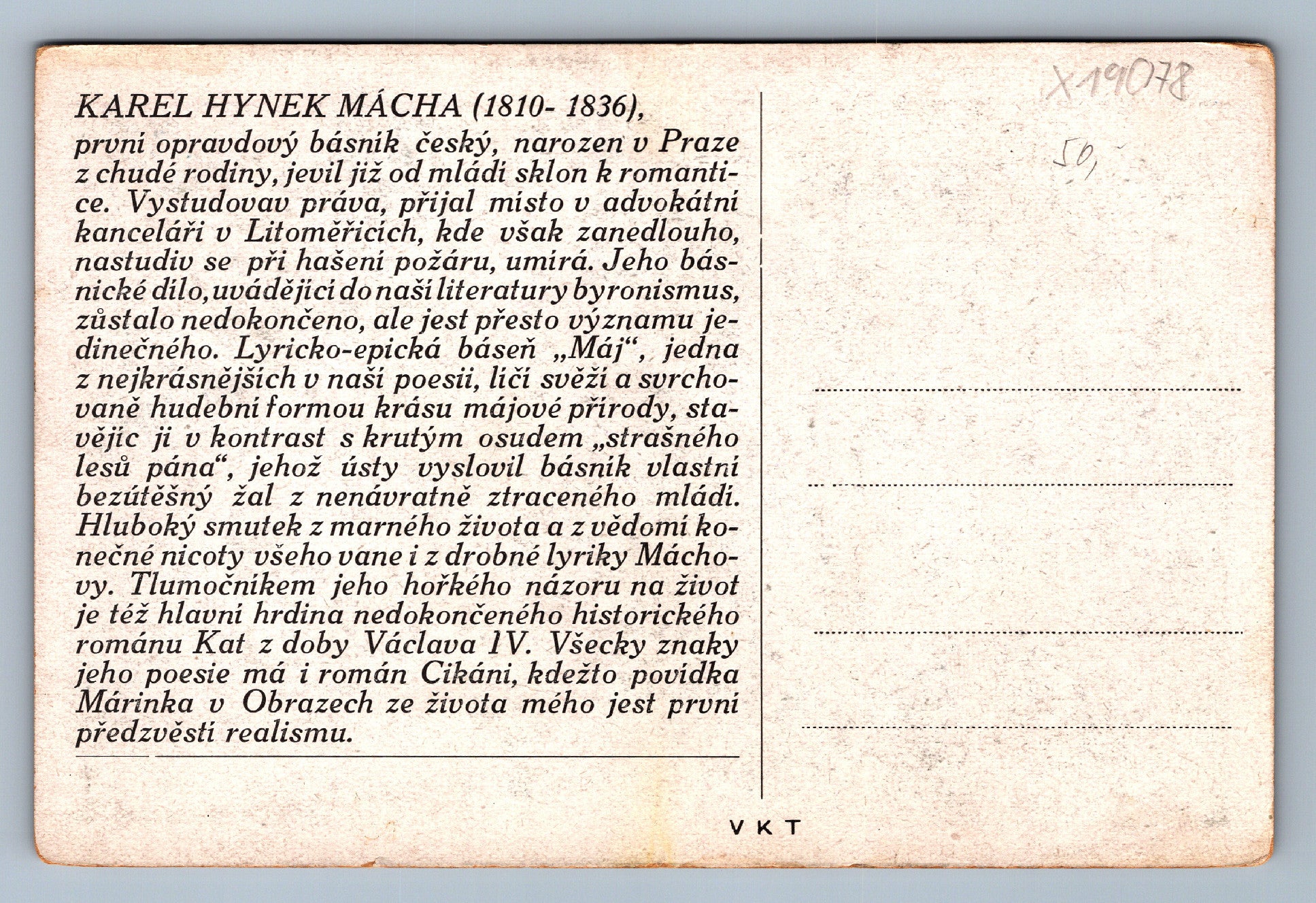 Pohlednice KAREL HYNEK MÁCHA (x19078)